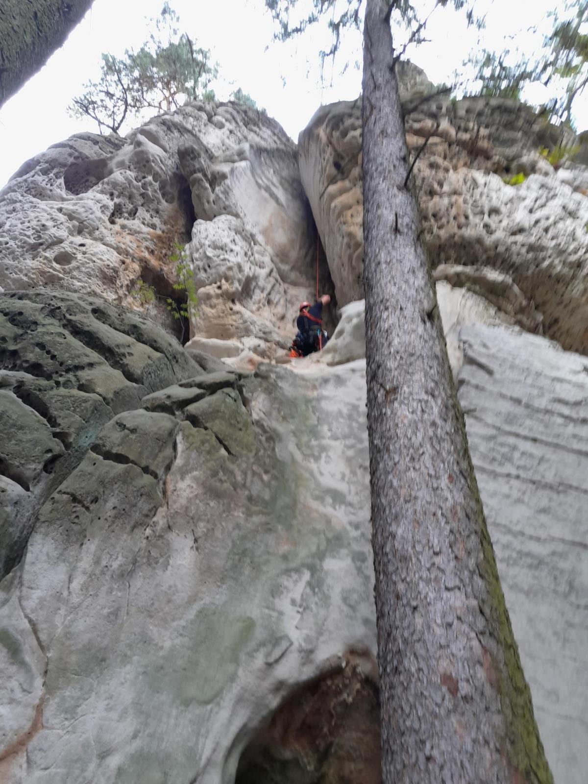 Hasiče na pomoc zavolali turisté, kterým se zkomplikovala nedělní procházka po Angrově stezce v Karlovicích – Sedmihorkách na Turnovsku. Jejich pes spadl do skalní štěrbiny, kde uváznul. Ve snaze o záchranu zvířete za psem na skálu slezl jeho majitel. Ani ten se ale následně nemohl dostat bezpečně na zem.
