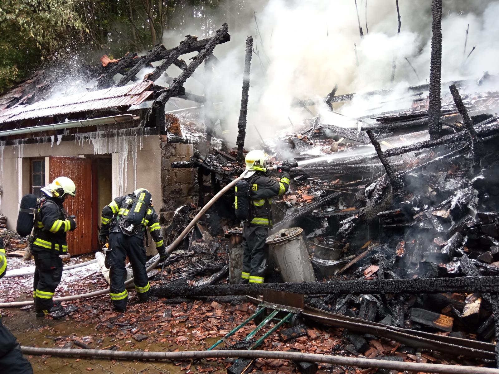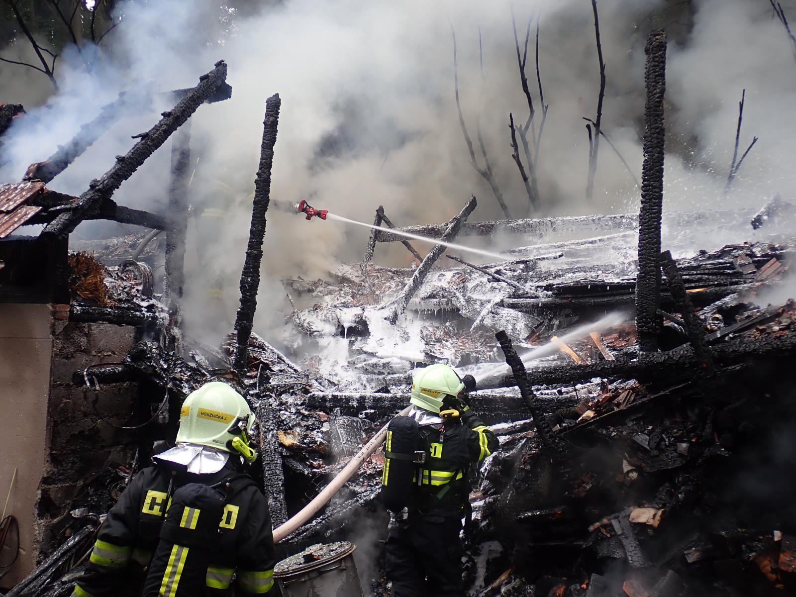 Jednalo se o budovu o rozměrech přibližně 8x3m, kterou majitel používal pro skladování dřeva. Hasiči z počátku bránili šíření požáru na rodinný dům, který se nacházel v těsné blízkosti. Po zabezpečení dodávky vody z hydrantové sítě byly postupně nasazeny čtyři vodní proudy.