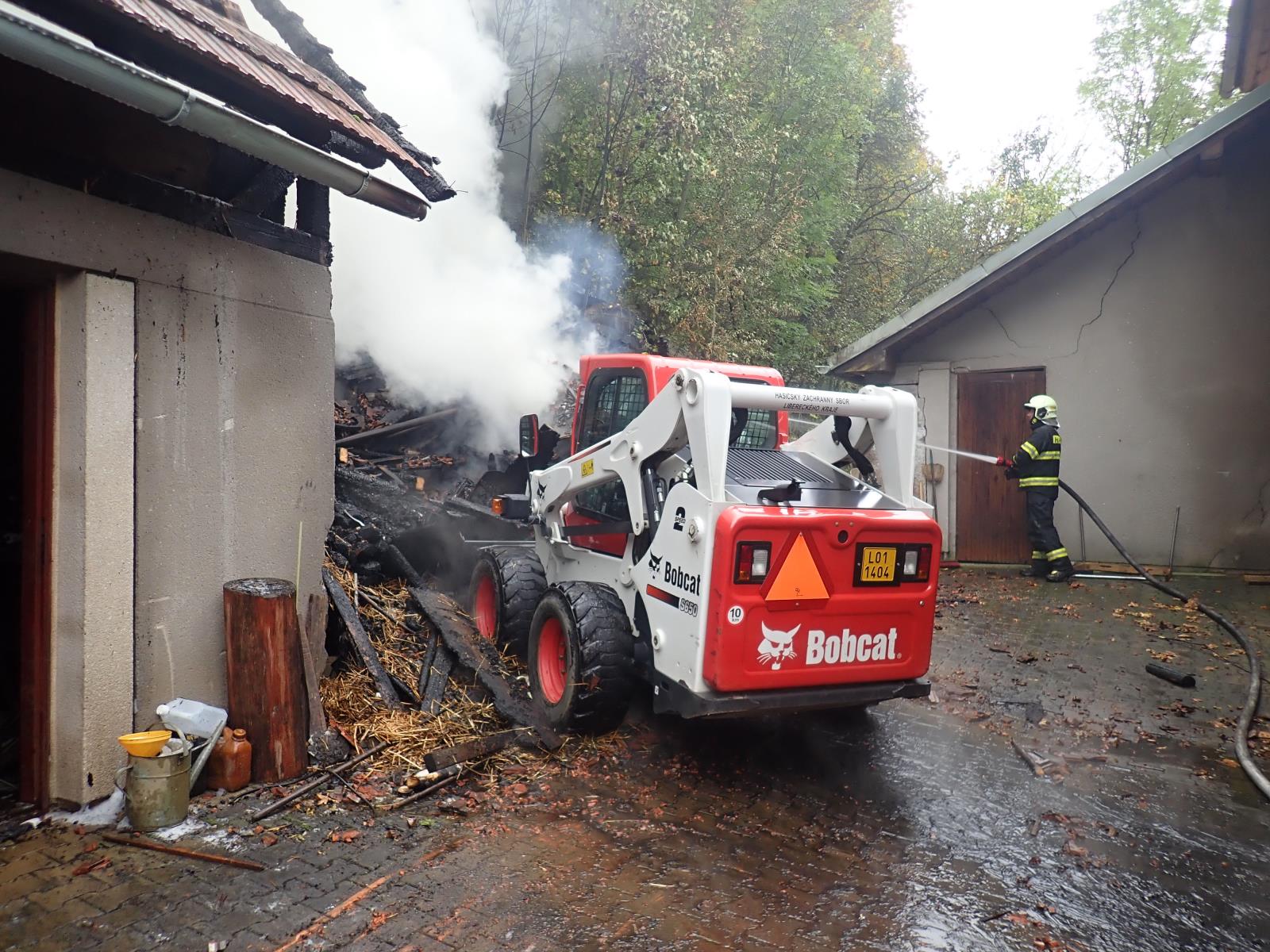 Pro úplnou likvidaci požáru a rozebírání požářiště velitel zásahu povolal kolový nakladač Bobcat S 650 ze stanice Liberec. Pomocí nakladače došlo postupně k rozebrání ohořelých konstrukcí a dohašení skrytých ohnisek. Po závěrečném průzkumu termokamerou bylo místo zásahu předáno místní jednotce a nařízena dohlídka. Při požáru došlo také bohužel ke zranění jedné osoby, které hasiči poskytli neodkladnou předlékařskou pomoc.