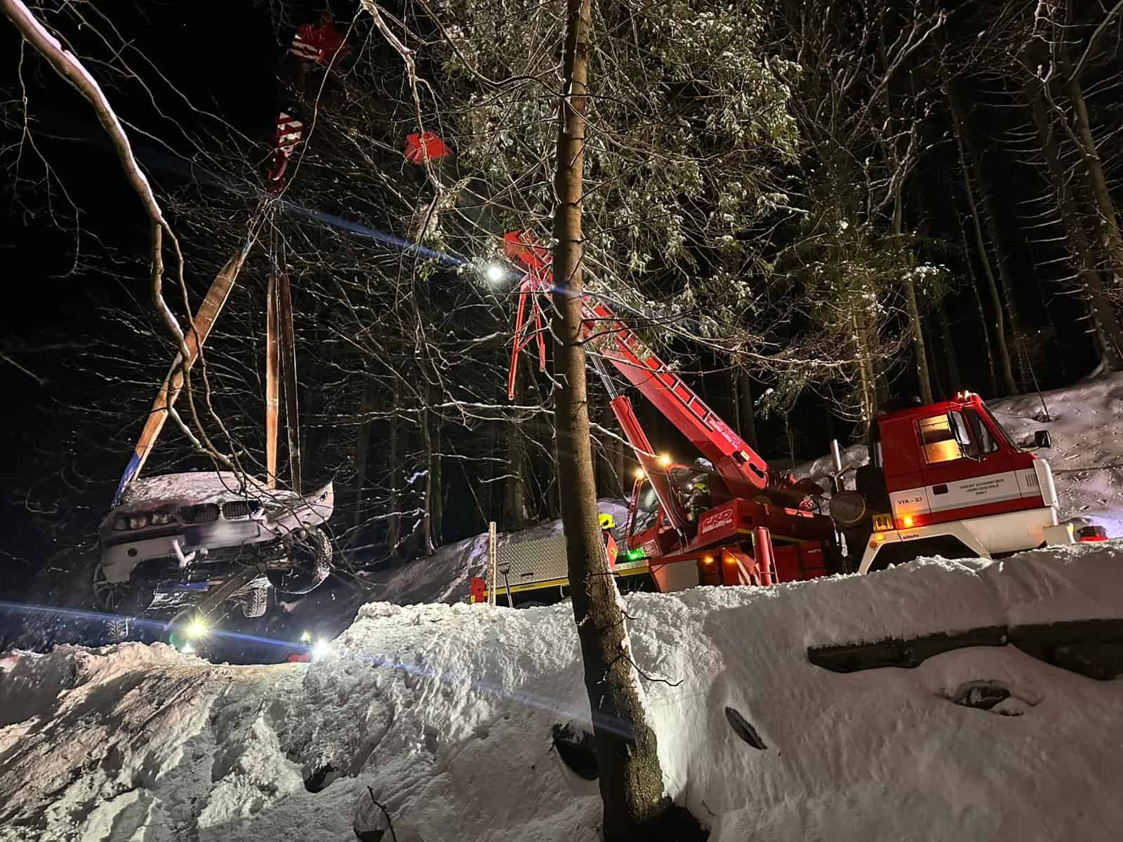 Majitel vozu se nejprve pokusil situaci řešit prostřednictvím odtahové služby. Ta však kvůli náročnému a zasněženému terénu nedokázala automobil vytáhnout. Na místo proto vyjely jednotky z centrální hasičské stanice Semily a ze stanice Jilemnice.