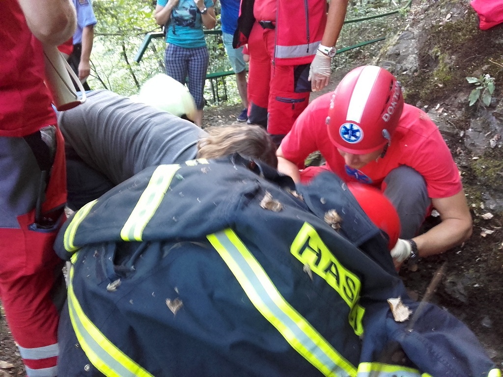 Žádná z osob nespadla do koryta Jizery, obě zůstaly na hraně skály. Hasiči provedli slanění a s pomocí evakuačního trojúhelníku dostali dítě zpět na cestu.