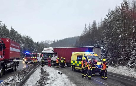 Kamion blokoval dva jízdní pruhy při dopravní nehodě