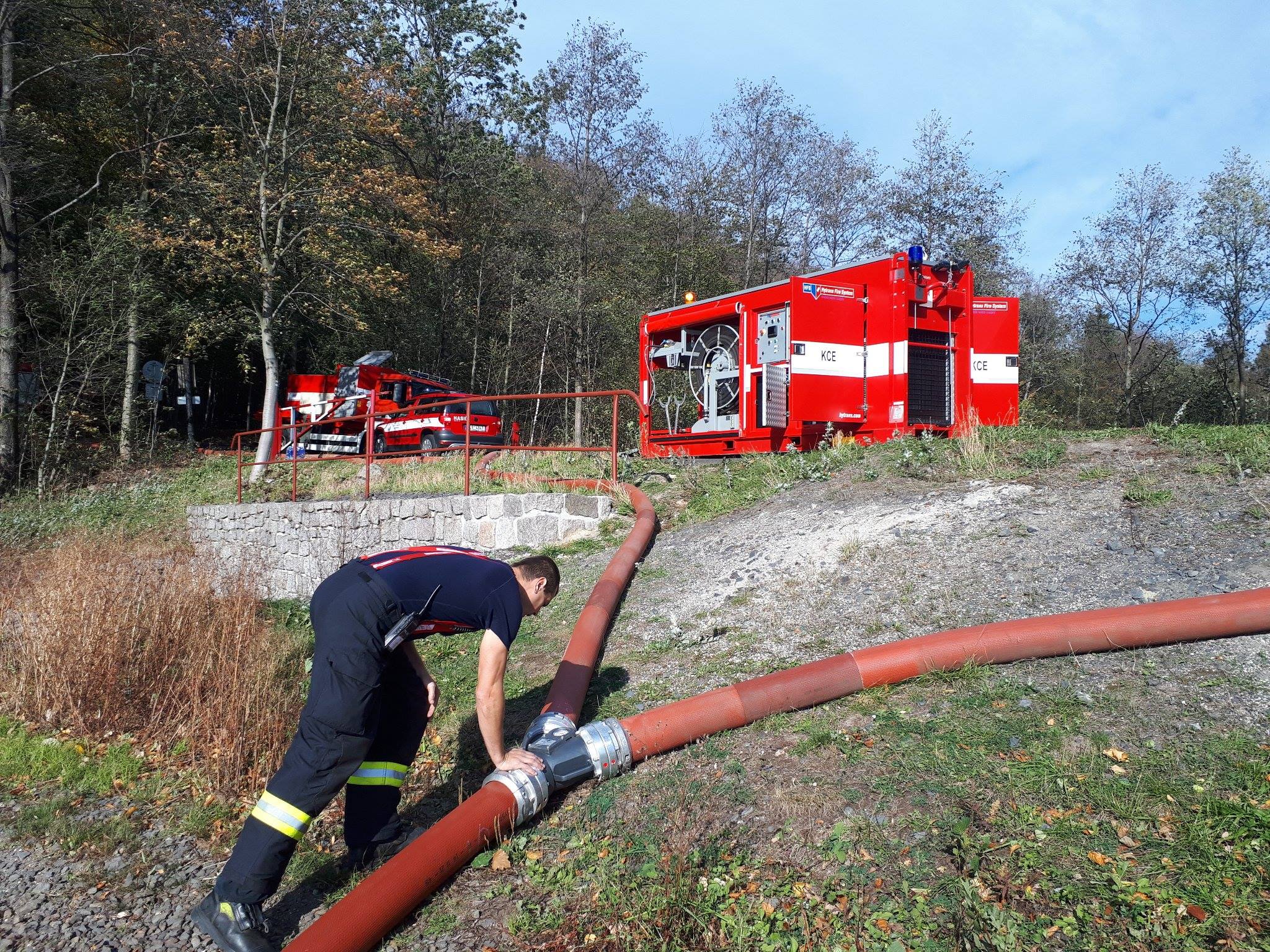 Pondělní den (15. 10. 2018) tráví od brzkého rána 16 jednotek hasičů v těžkém terénu ve svahu mezi obcemi Raspaneva a Oldřichov v Hájích, kde došlo k požáru lesního porostu. Požár zasáhl plochu o rozloze 5 - 6 ha. Hašení bukového lesa komplikuje velké převýšení a skalnatý terén se spoustou strží, do kterého nemohou hasiči najet svou těžkou technikou. V provozu je přes 600 metrů hadic. Hasiči likvidují požár šesti proudy vody. Hasební látka je na požářiště dopravována kyvadlově pomocí cisternových automobilových stříkaček, ale vzhledem ke vzdálenosti vodního zdroje a špatně přístupnému terénu použili hasiči také metodu leteckého hašení pomocí vrtulníku se závěsným vakem (bambivakem). Do této chvíle bylo provedeno 40 shozů vody. Vrtulník nyní velitel zásahu stáhl (13:00 hodin). Jelikož k požářišti vede jen úzká lesní cesta, na kterou se nevejdou dvě cisterny vedle sebe a kyvadlová doprava ze 4 km vzdáleného Šolcova rybníka je tak částečně omezena, ze stanice Česká Lípa dopravili příslušníci velkokapacitní čerpadlo HFS SOMATI. Tím jsou hasiči schopni zajistit dálkovou dopravu vody hadicemi až na požářiště. Somati nyní čerpá 5000 litrů vody za minutu.