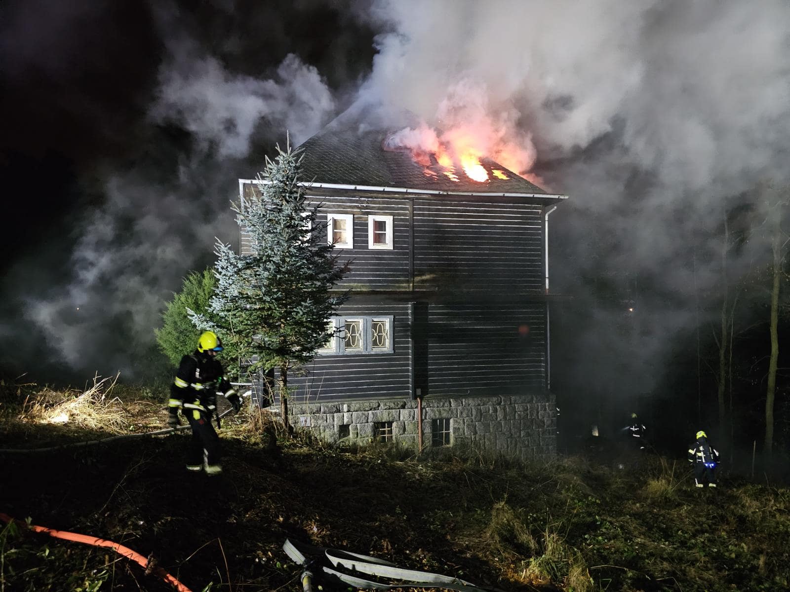 Noční klid narušil požár střechy dvoupodlažního domu, který byl na tísňovou linku oznámen několika nezávislými volajícími. První jednotky vyrazily na místo krátce po půl desáté večer. Po příjezdu provedli hasiči průzkum objektu a potvrdili, že plameny zasáhly střešní konstrukci. Zároveň ověřili, že se v domě s vysokou pravděpodobností nenacházejí žádné osoby, protože objekt byl zřejmě trvale neobydlen. Tato informace byla klíčová pro volbu taktiky zásahu a bezpečný postup jednotek.
