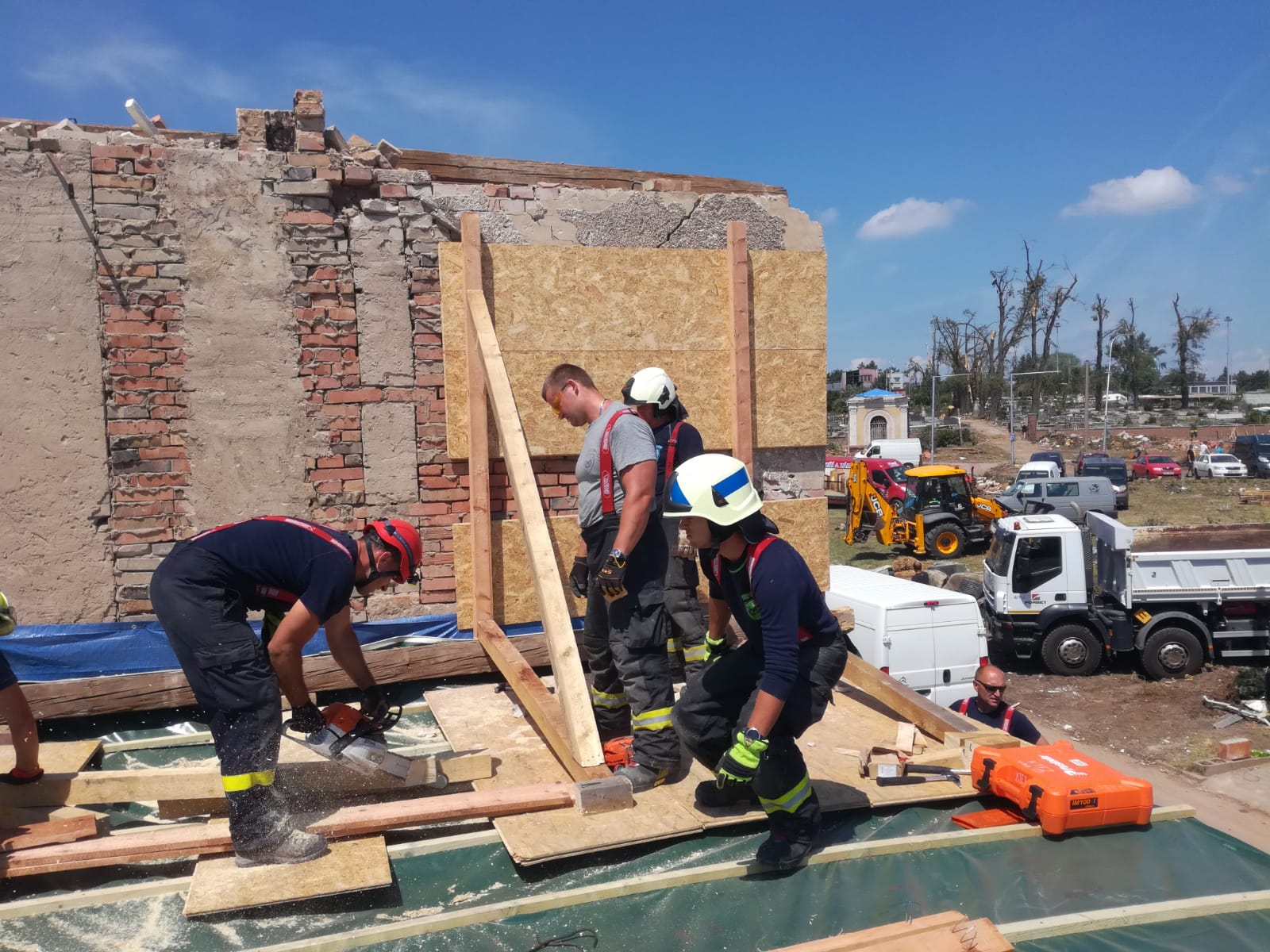 Ve vybrané řadě rodinných domů hasiči hlavně stabilizují, vyrábí výztuhy poškozených zdí a opravují střechy. Pro odklízení a odvoz suti, materiálu a jiného odpadu na určené deponie používají těžkou techniku. Vyprošťovací automobil byl dnes mimo jiné nasazen pro usnadnění práce při kácení tornádem poškozených stromů.