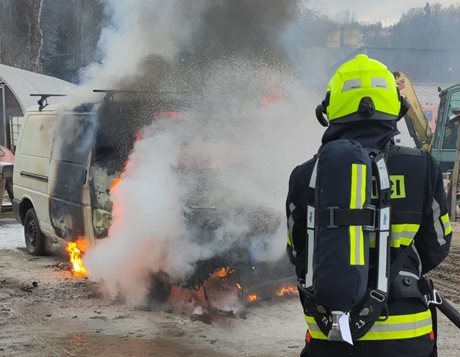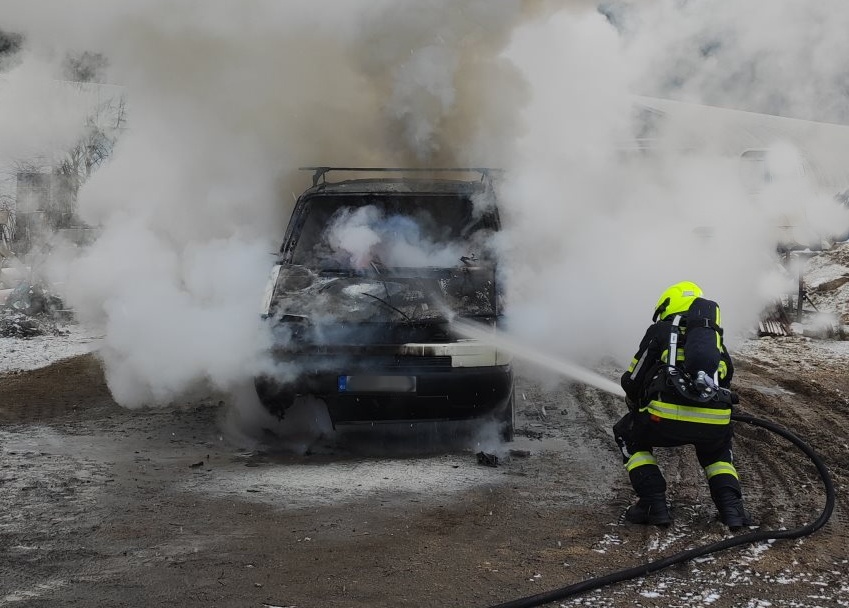 Plameny zachvátily dodávku, hasiči zasáhli bleskově