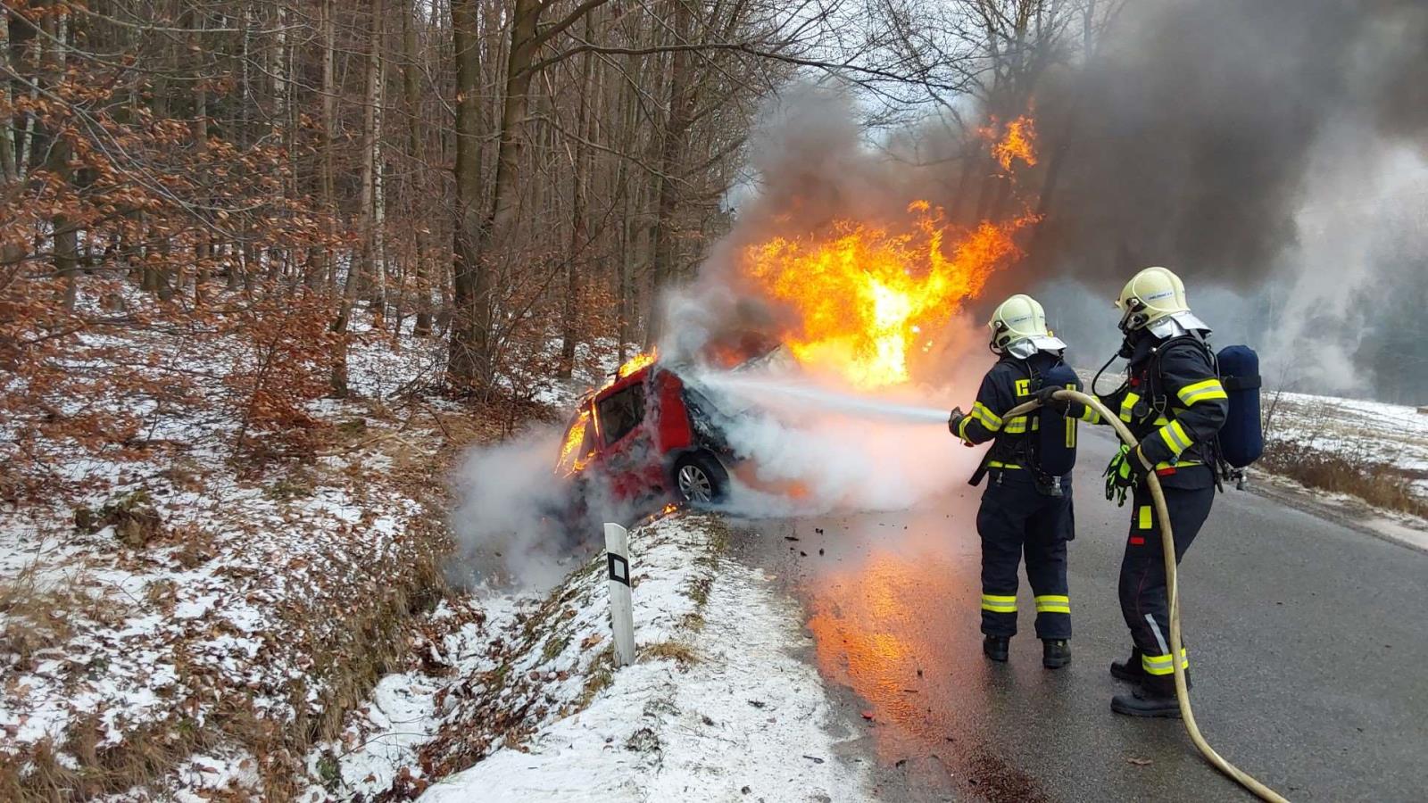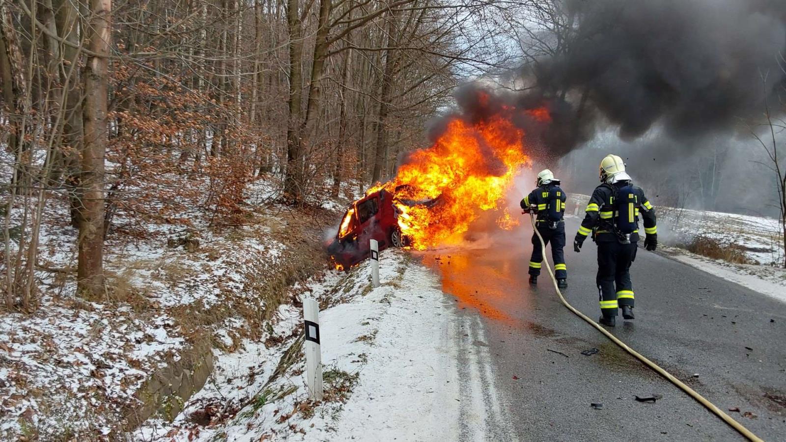 Ve čtvrtek 23. ledna krátce před polednem spěchaly hasičské jednotky k požáru osobního automobilu po dopravní nehodě na silnici třetí třídy u Rynoltic, části Jítrava. Podle informací na místě byla jedna osoba zraněna, avšak v době příjezdu záchranných složek se již nacházela mimo vozidlo a byla v péči zdravotnické záchranné služby.