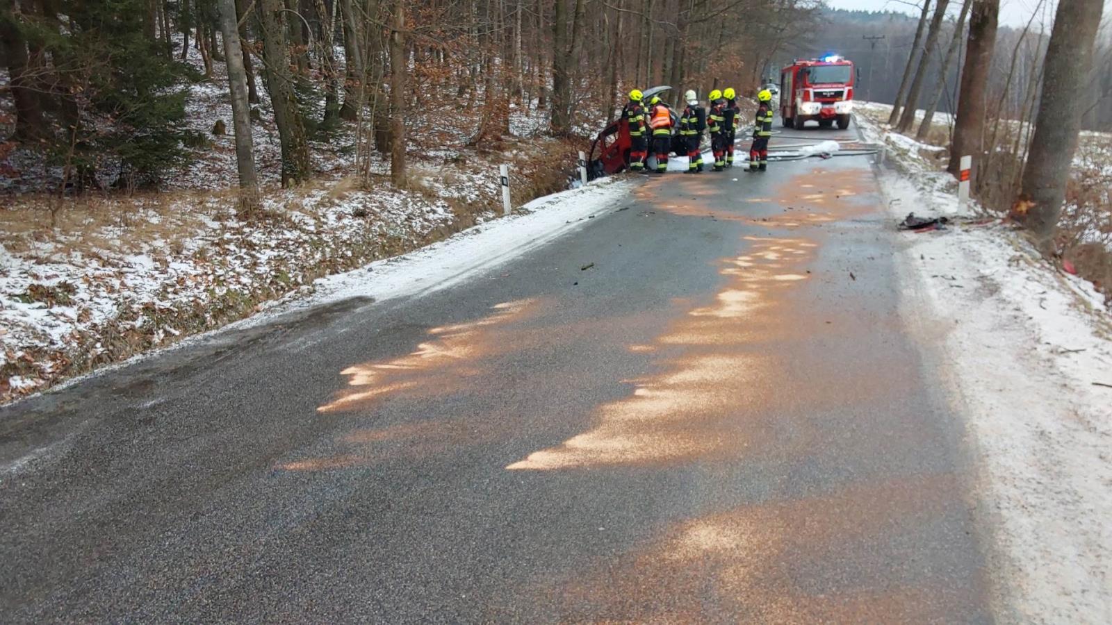 „Z havarovaného automobilu unikly provozní kapaliny, které jsme ihned zasypali sorbentem, aby nedošlo ke kontaminaci okolí,“ uvedl jeden ze zasahujících hasičů.