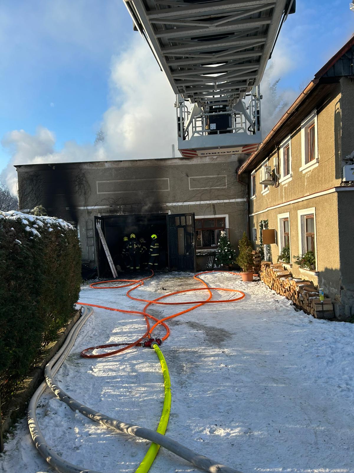 Krátce po sedmé hodině ráno přijalo operační středisko tísňové volání o požáru objektu, který se nacházel v těsné blízkosti rodinného domu. Už při příjezdu první jednotky bylo zřejmé, že situace je vážná. Požár byl v plném rozsahu a zasáhl dílnu přistavěnou k obytné budově. V době vzniku požáru se uvnitř nikdo nenacházel. Jedna osoba byla mimo objekt, bez zranění a v bezpečí.