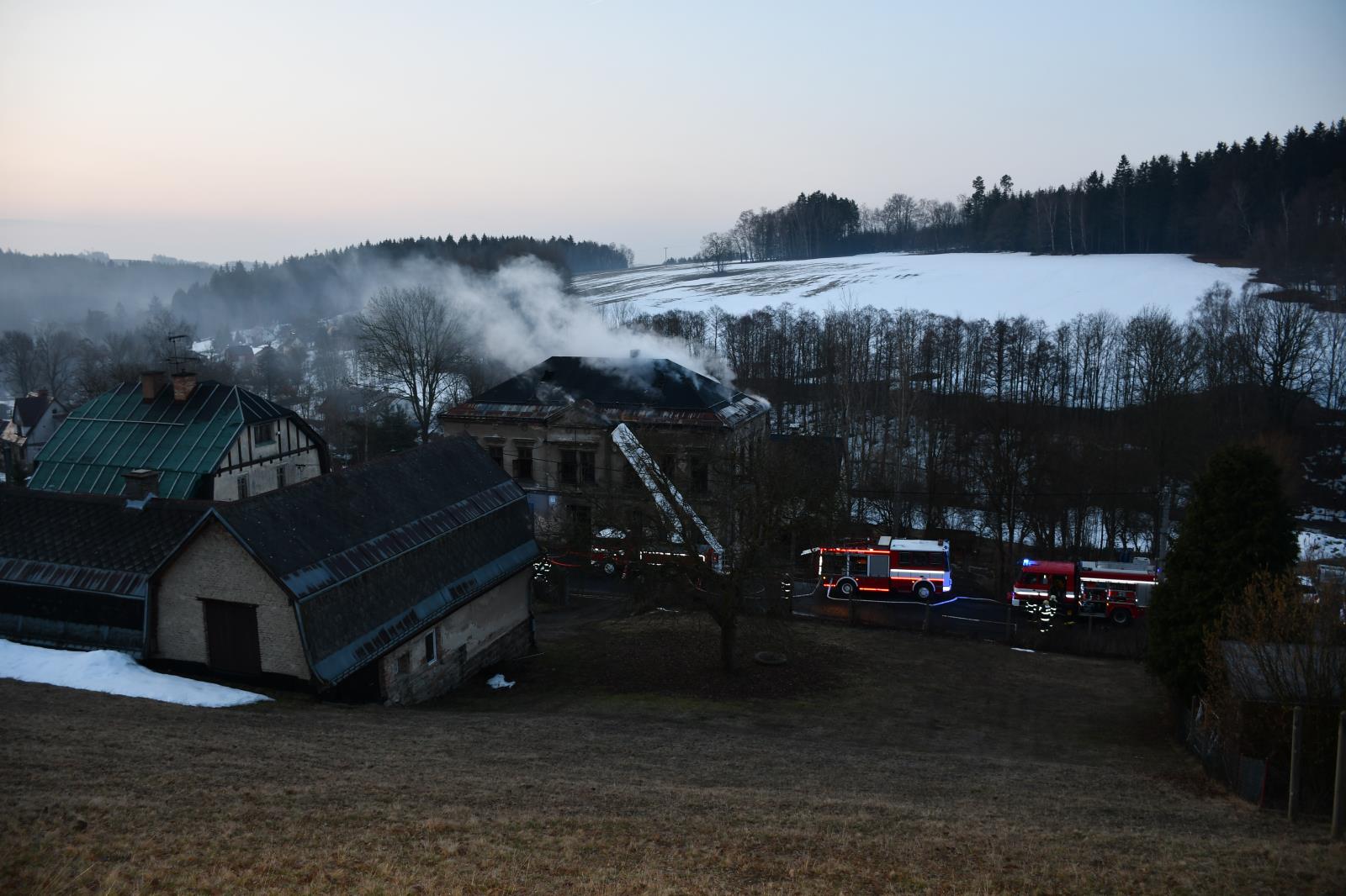 V pátek 26. 3. v brzkých ranních hodinách došlo k požáru třípodlažního objektu v Pěnčíně, Huti. Do likvidace požáru se postupně zapojilo sedm jednotek PO včetně výškové techniky.