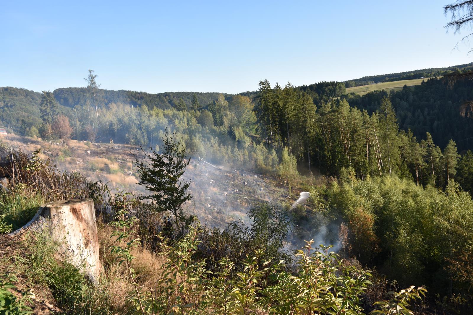 Událost byla na Krajské operační a informační středisko ohlášena v sobotu krátce po 16. hodině. Na boj s požárem hasiči nasadili sedm vodních proudů. Celkem byla zasažena plocha o rozloze jednoho hektaru. Hasiči svým zásahem uchránili další porost o rozloze čtyři hektary. V místě události se vystřídalo 14 jednotek hasičů, které s požárem bojovaly přes tři hodiny.