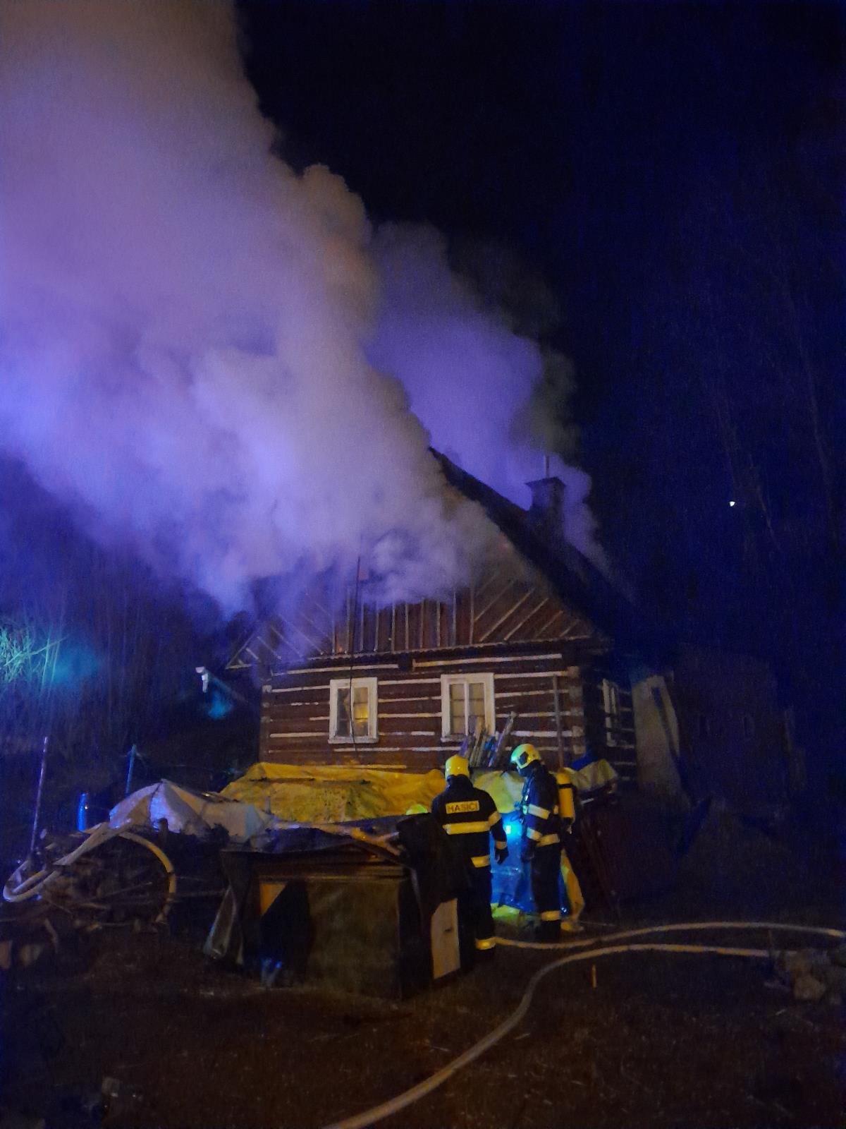 Požár roubenky v Železném Brodě