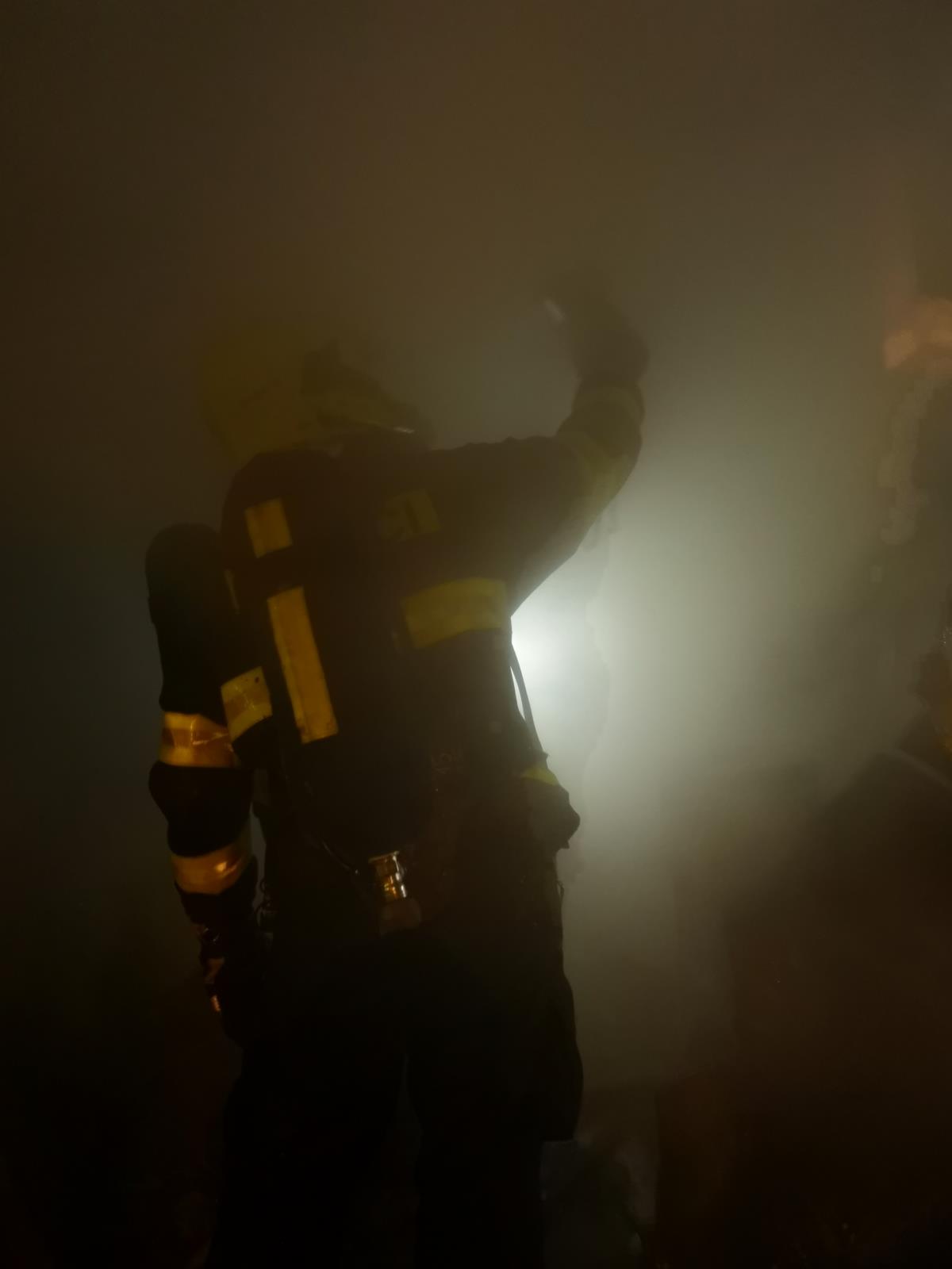 Po příjezdu na místo události bylo průzkumem zjištěno, že se jedná o požár stavební buňky, který ohrožuje v blízkosti stojící kamiony. Velitel zásahu rozhodl o nasazení dvou vysokotlakých vodních proudů k hašení a ochlazování. Lokalizace požáru byla nahlášena na Krajské operační a informační středisko HZS Libereckého kraje ve 23:18 hod. K odvětrání prostoru byla použita přetlaková ventilace a dohašování skrytých ohnisek bylo prováděno s pomocí termokamery. Na místě se nacházela jedna zraněná osoba, které příslušníci poskytli neodkladnou předlékařskou pomoc a následně ji předali do péče zdravotnické záchranné službě. Příčina požáru a výše škody je v šetření, hasiči uchránili majetek v hodnotě 3.500.000 Kč. Na místě zasahovala stanice HZS Doksy a JSDHO Dubá a Tuhaň.