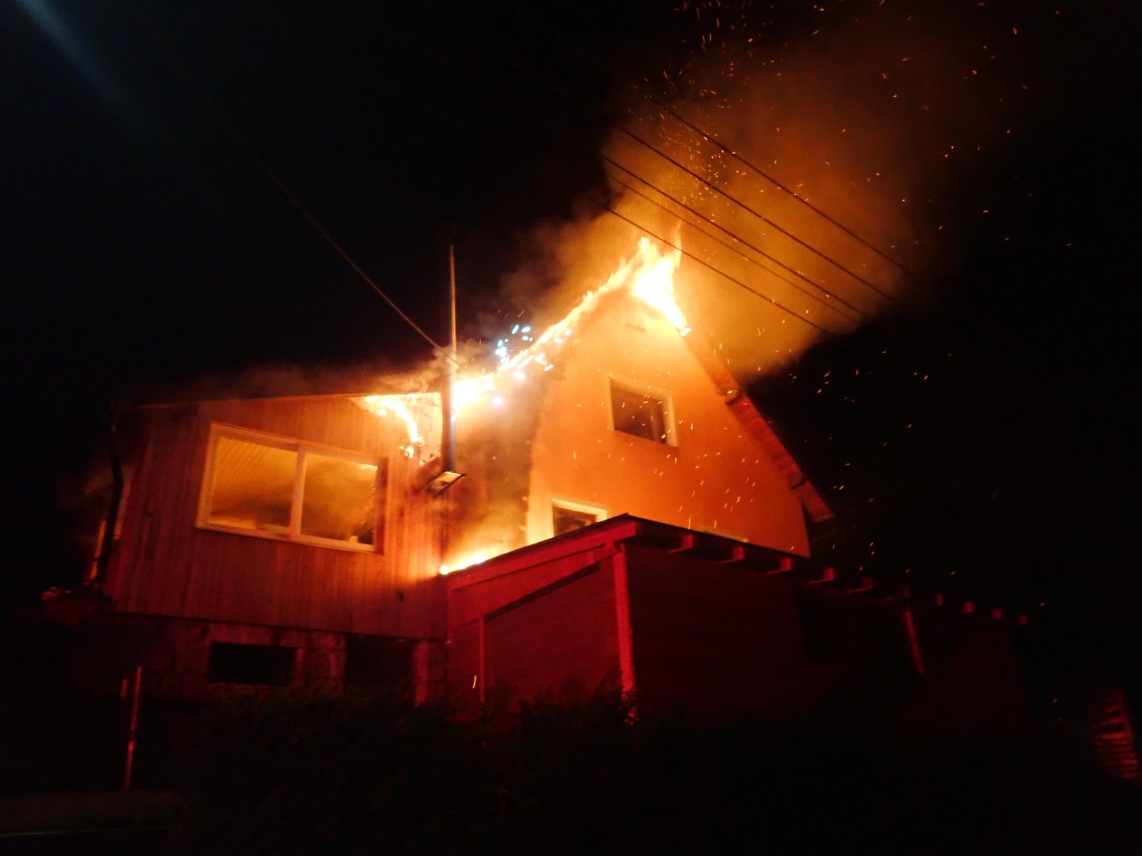 Požár střechy rodinného domu a požár autovraku, události, ke kterým byli o víkendu hasiči vysláni
