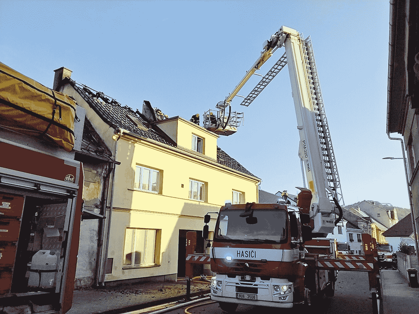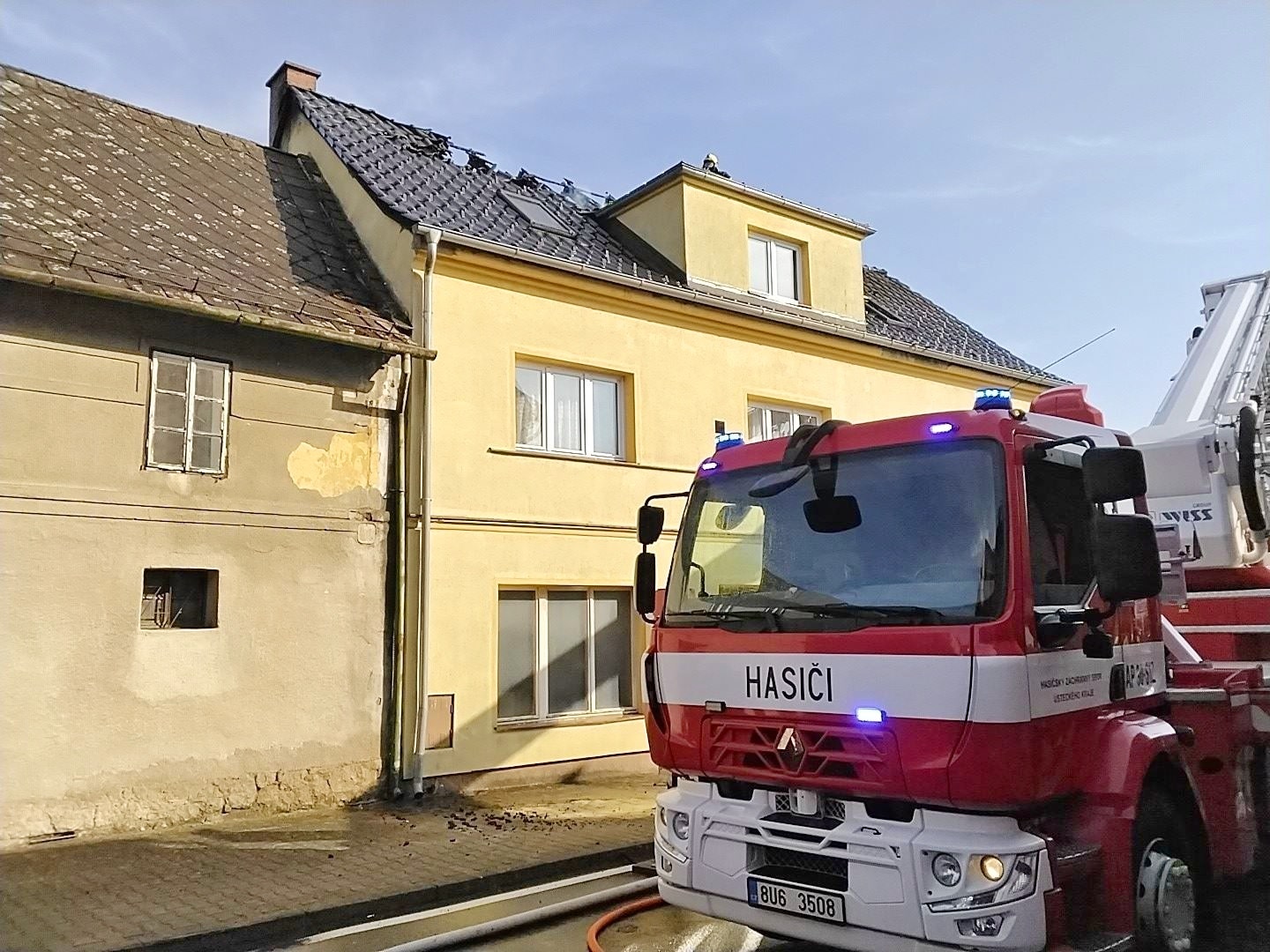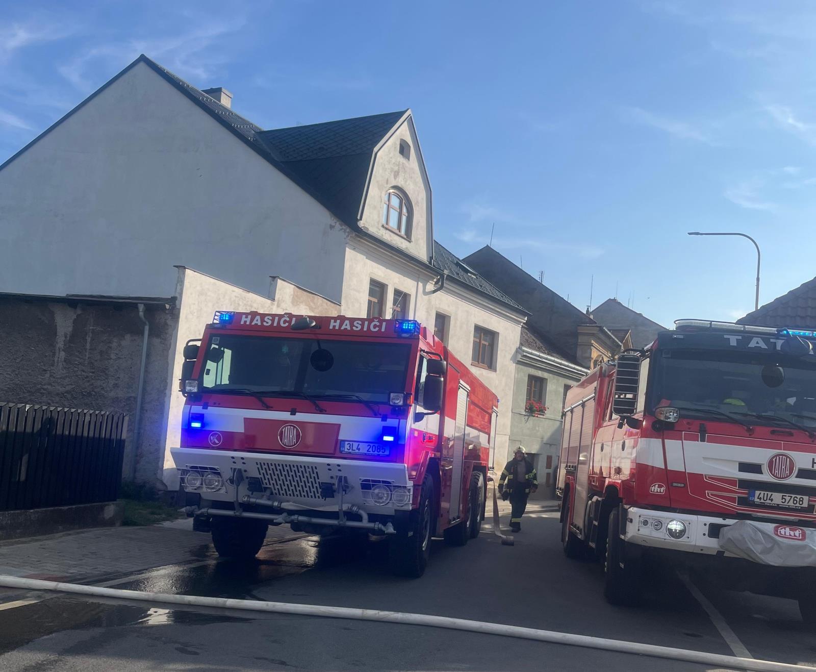 Při příjezdu první jednotky byl dům prázdný a nikdo nebyl zraněn. Oheň však už poškodil značnou část střechy. Hasiči nasadili tři vodní proudy a výškovou techniku nejen k hašení, ale i k ochraně sousedních domů.