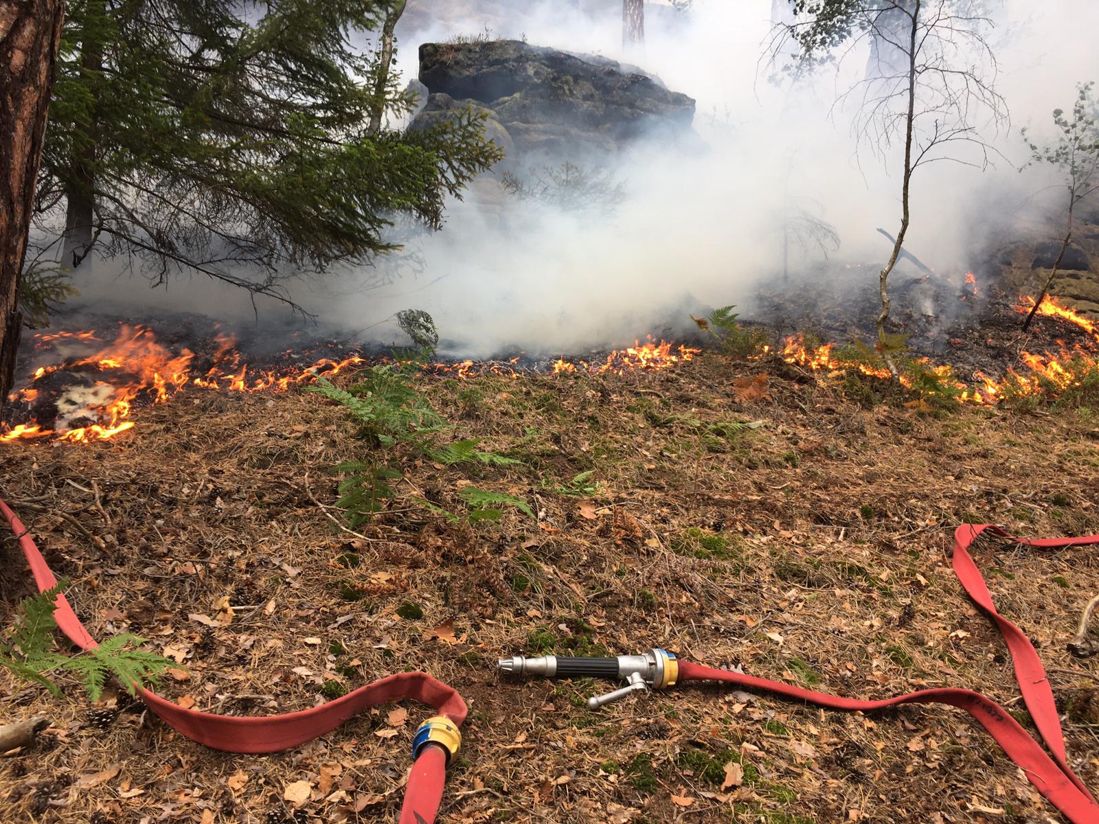Požár v nepřístupném a skalnatém terénu likvidovali hasiči několik hodin