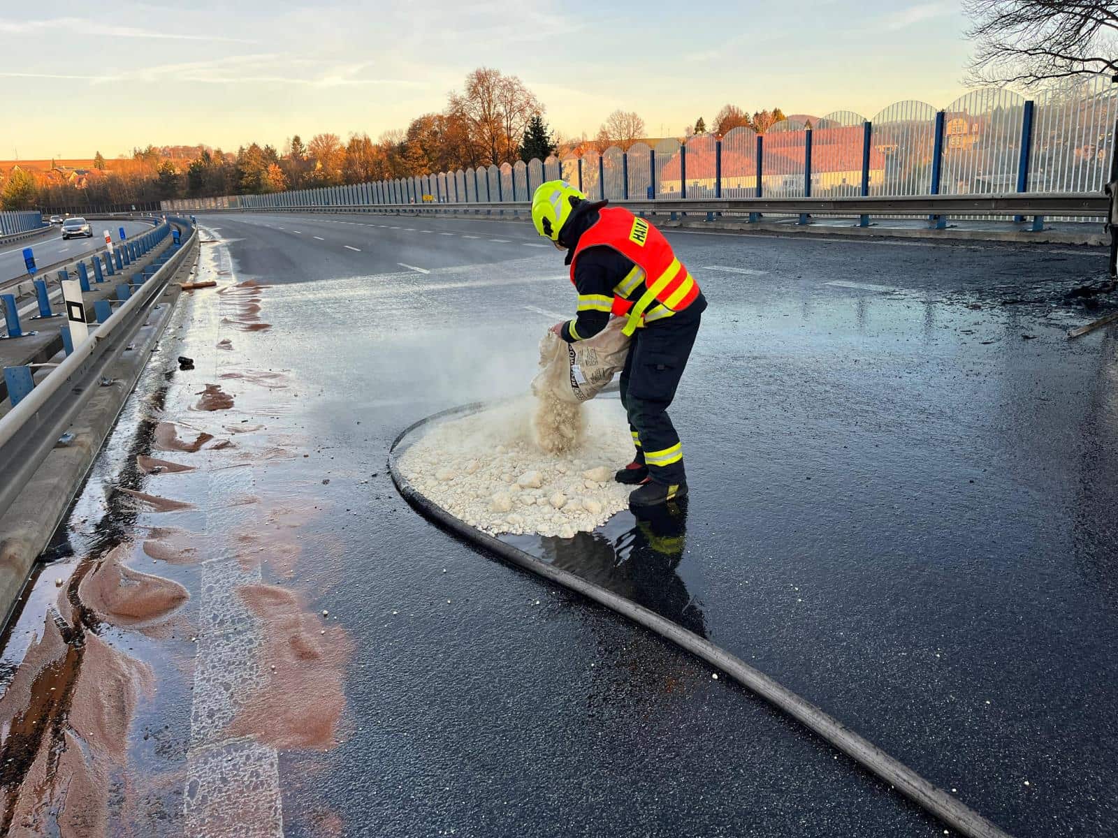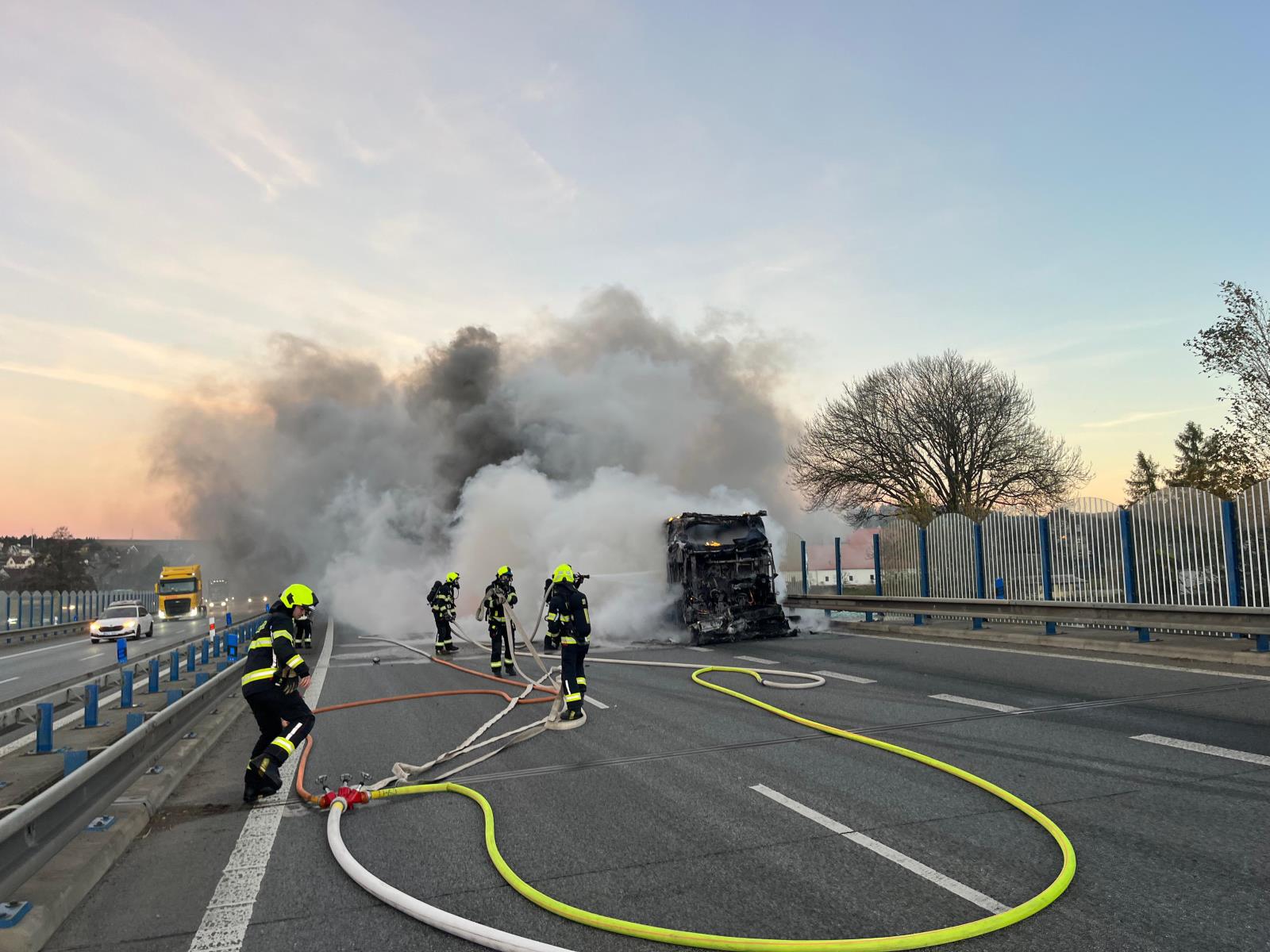 Zasahující jednotky zároveň zachytily unikající provozní kapaliny, které zasypaly sorbentem. Po dobu zásahu byla komunikace ve směru na Hrádek nad Nisou uzavřena. Před osmé hodině byl provoz obnoven jedním jízdním pruhem, plné zprůjezdnění následovalo po odtažení vozidla.
