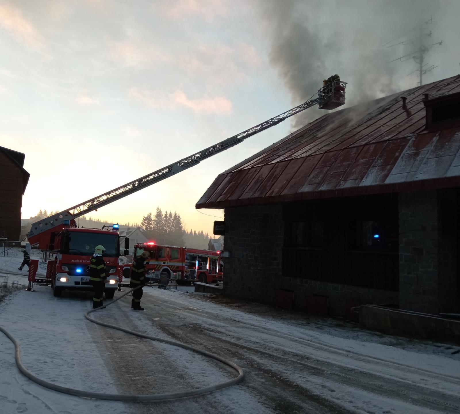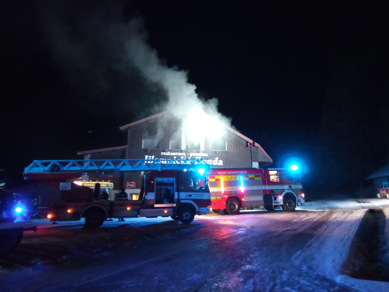24.11.2020 Krajské operační a informační středisko Hasičského záchranného sboru Libereckého kraje přijalo dnes ráno ve 4:36 hodin oznámení o kouři valícího se z oken horského penzionu Jilemnická Bouda na Horních Mísečkách ve Vítkovicích v horských partiích Krkonoš.