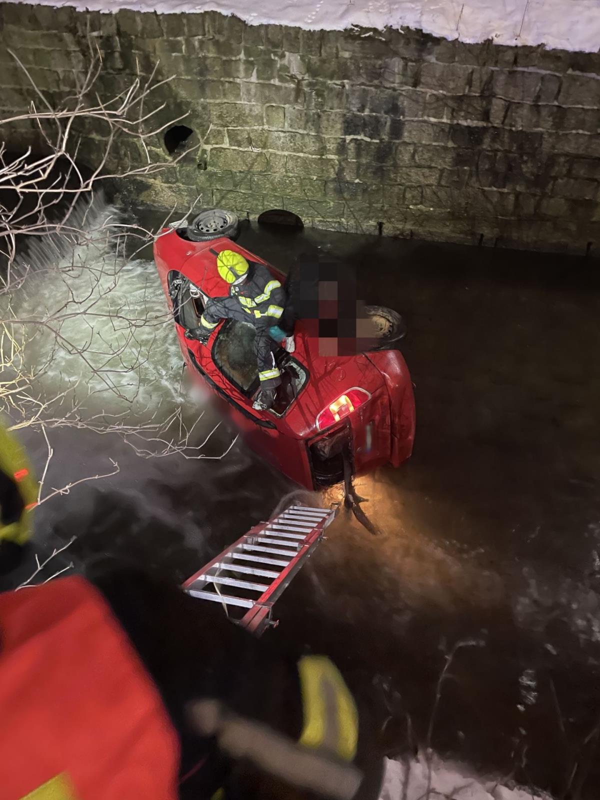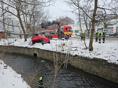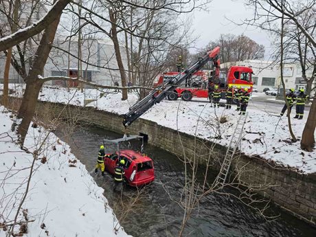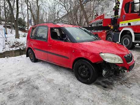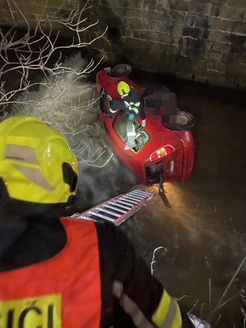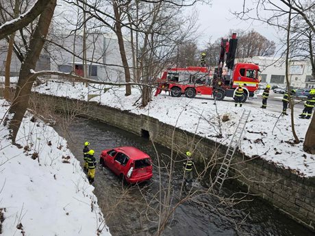 Auto skončilo v řece, hasiči ho museli vyprostit