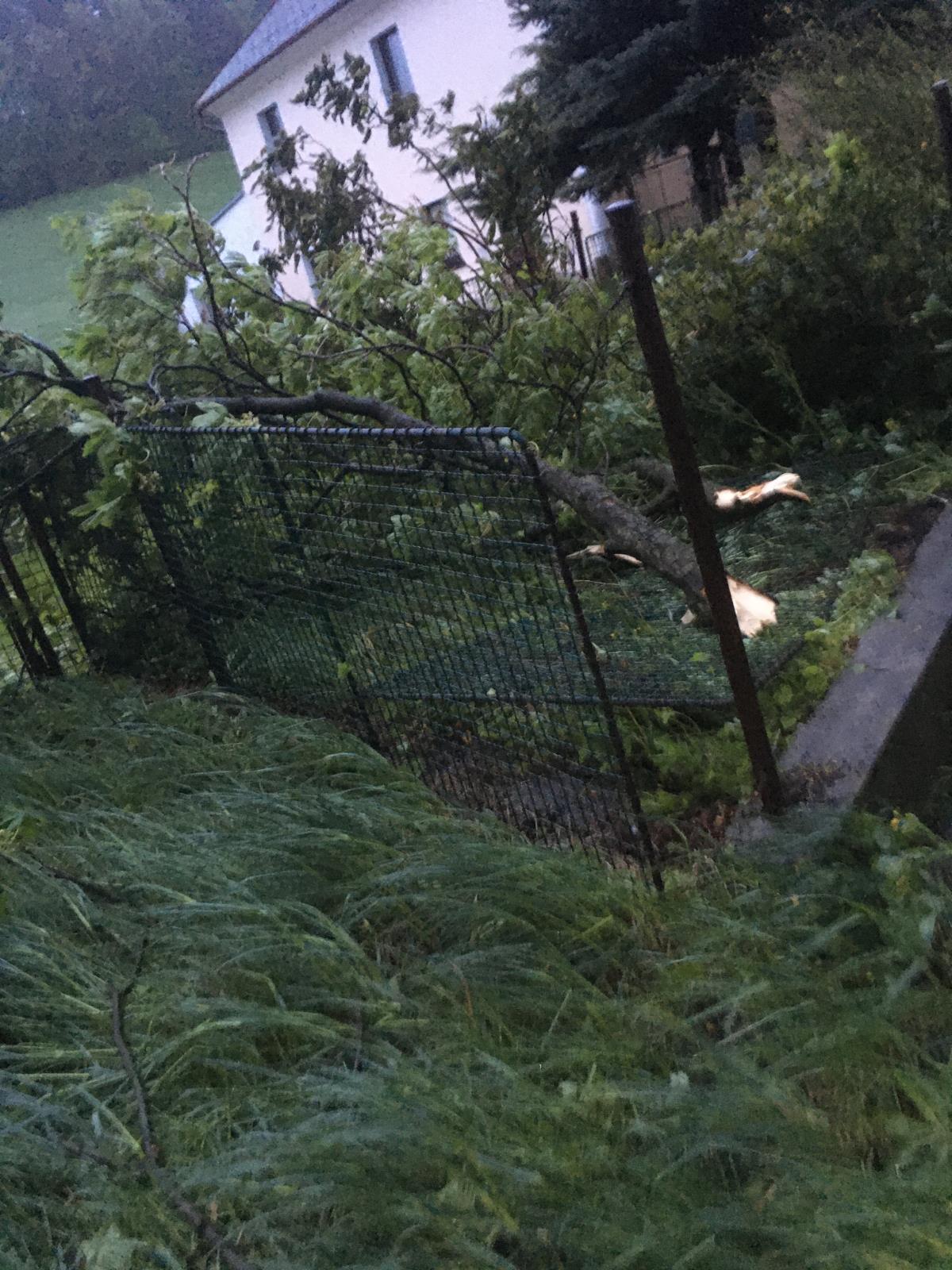 V Jítravě se pro změnu silný vítr opřel do vzrostlého stromu, který sílu větru nevydržel a zřítil se přímo na rodinný dům. Strom spadl na vchod domu a uvnitř uvěznil majitelky psa. Vzhledem k tomu, že nehrozilo bezprostřední ohrožení, bylo majitelce doporučeno strávit noc mimo objekt. Odstranění stromu by měli vyřešit stromolezci tak, aby nedošlo k poškození domu.