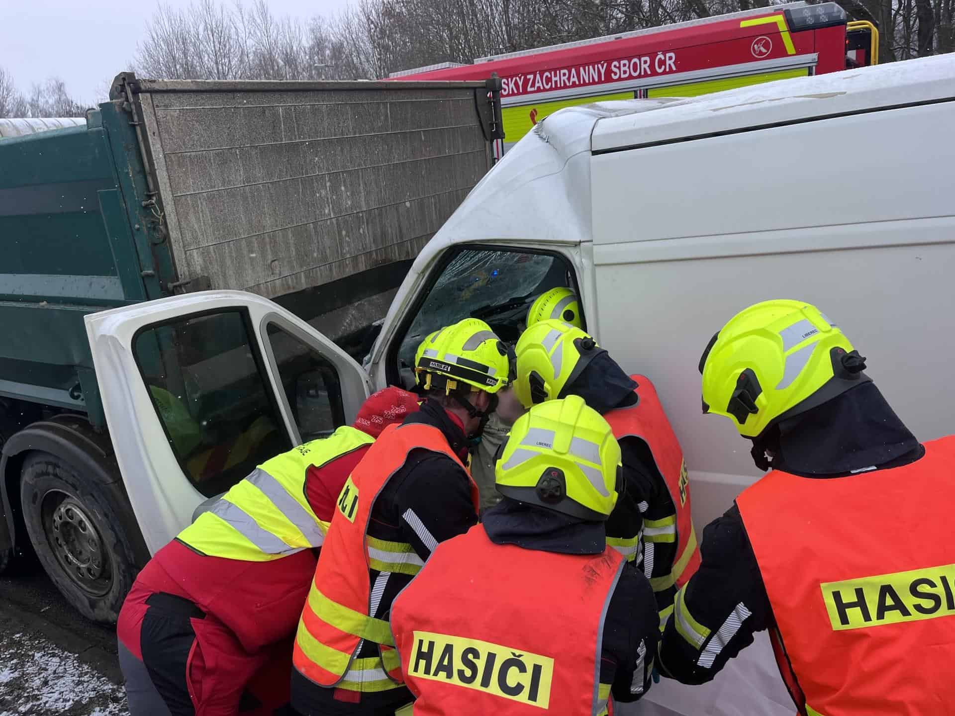 Ve čtvrtek 29. ledna 2026 přibližně půl hodiny po poledni vyjížděli profesionální hasiči z Liberce k dopravní nehodě v Chrastavě. Ke střetu došlo u benzinové čerpací stanice a mimo rychlostní komunikaci I 35. Srazilo se zde nákladní vozidlo s dodávkou. Už první informace naznačovaly, že na místě bude potřeba rychlý zásah složek integrovaného záchranného systému.