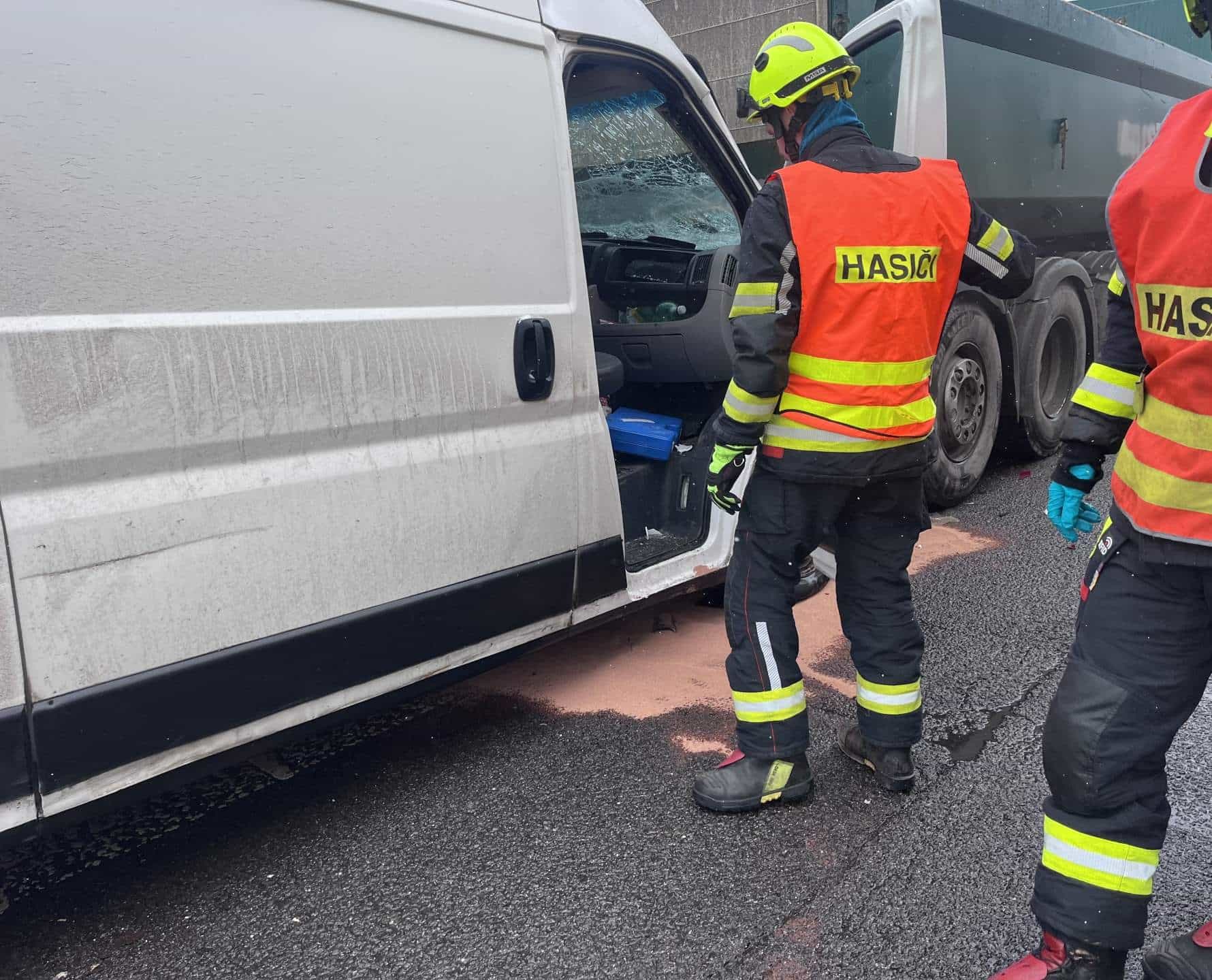 Dopravní nehoda nákladního vozidla a dodávky vedla k zásahu hasičů, vyproštění zraněné osoby a likvidaci úniku kapalin. Událost byla už třetí nehodou, ke které hasiči v kraji ten den vyjeli.