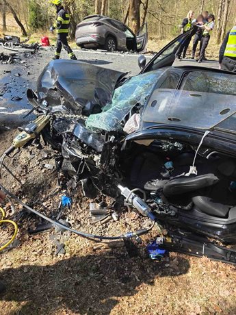 Těžká nehoda uvěznila řidiče ve zdemolovaných vozech