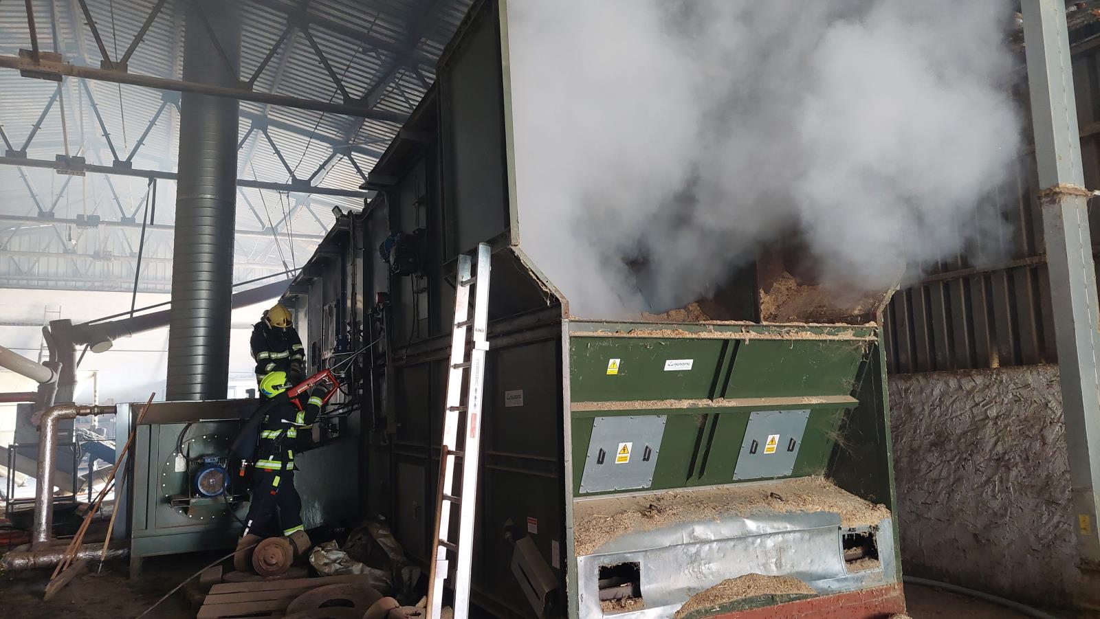Po příjezdu jednotek požární ochrany na místo události bylo průzkumem zjištěno, že došlo k zahoření vzduchotechniky a dopravníku na peletky. Hasební práce probíhaly pomocí 1 proudu C, hasiči prováděli demontáž technologického zařízení a ze stroje ručně vyskladňovali část hořícího materiálu. Na místo byla velitelem zásahu povolána speciální technika – CCS Cobra. Díky vysokotlakému hasicímu a řezacímu zařízení Cobra se podařilo snížit teplotu uprostřed místa události. Tři příslušníci byli nasazeni v dýchací technice uvnitř stroje, odkud vyskladňovali zvlhčenou hmotu z peletek.