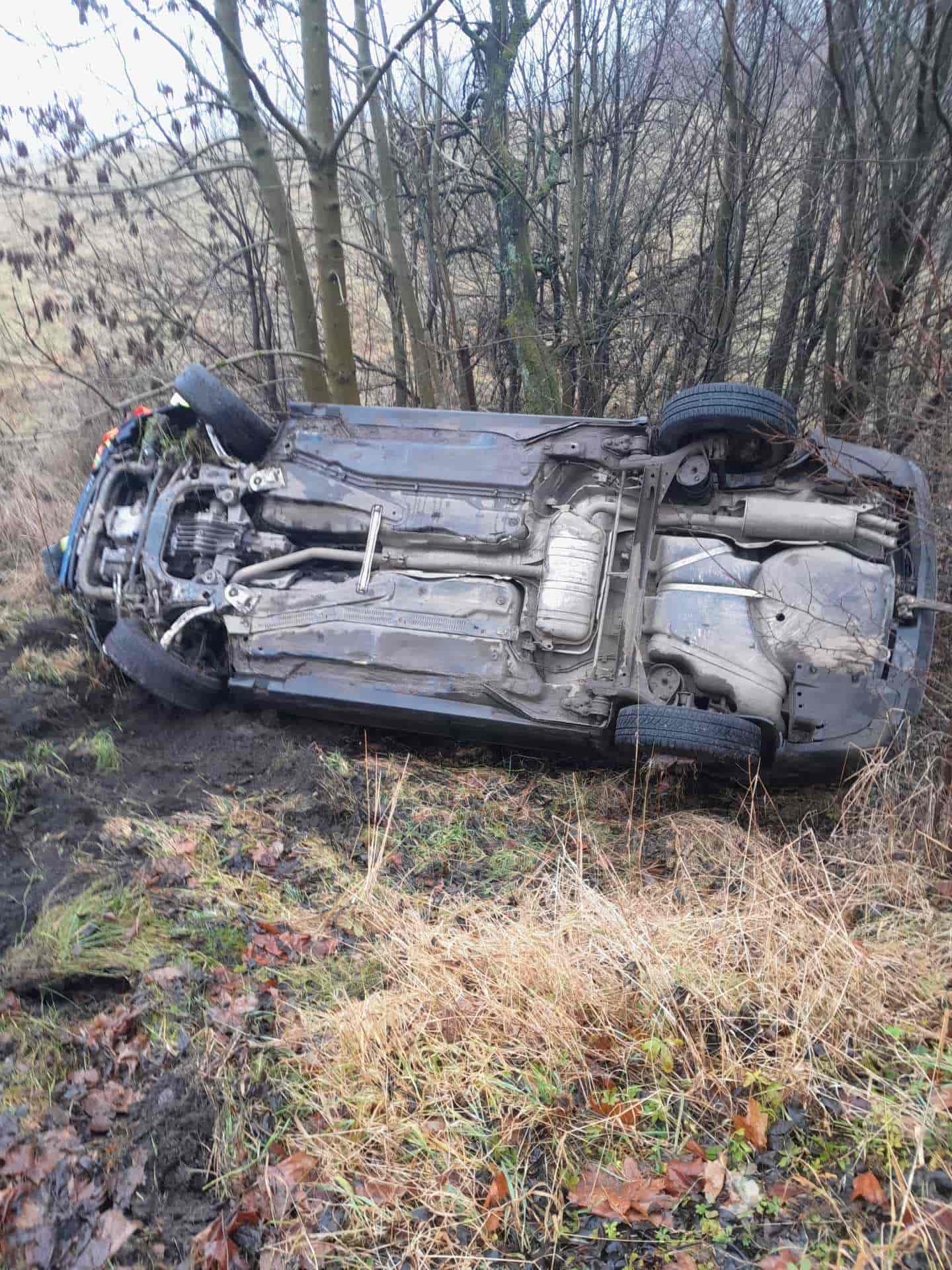 Vážná nehoda skončila převráceným vozem, posádka byla nezvěstná