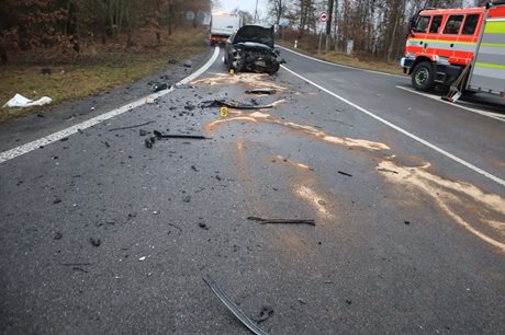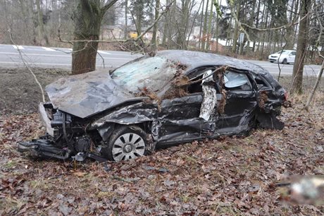 K první nehodě došlo kolem 11:45. Řidič vozidla značky Volkswagen Passat Variant nedal přednost projíždějícímu osobnímu vozidlu Audi A3 Sportback. Následný střet odhodil Audi ze silnice, kde se několikrát přetočilo přes střechu. Řidič Audi utrpěl těžká zranění a byl transportován do liberecké nemocnice. Policie zjistila, že viník nehody nikdy neabsolvoval autoškolu. Předběžná hmotná škoda byla odhadnuta na 415 000 korun.