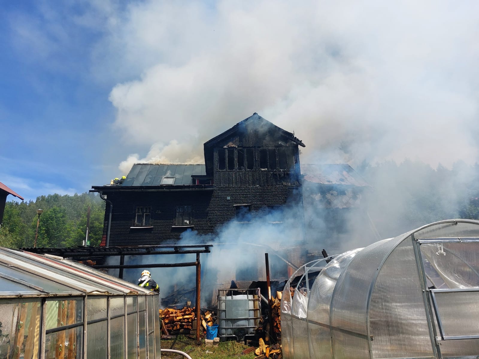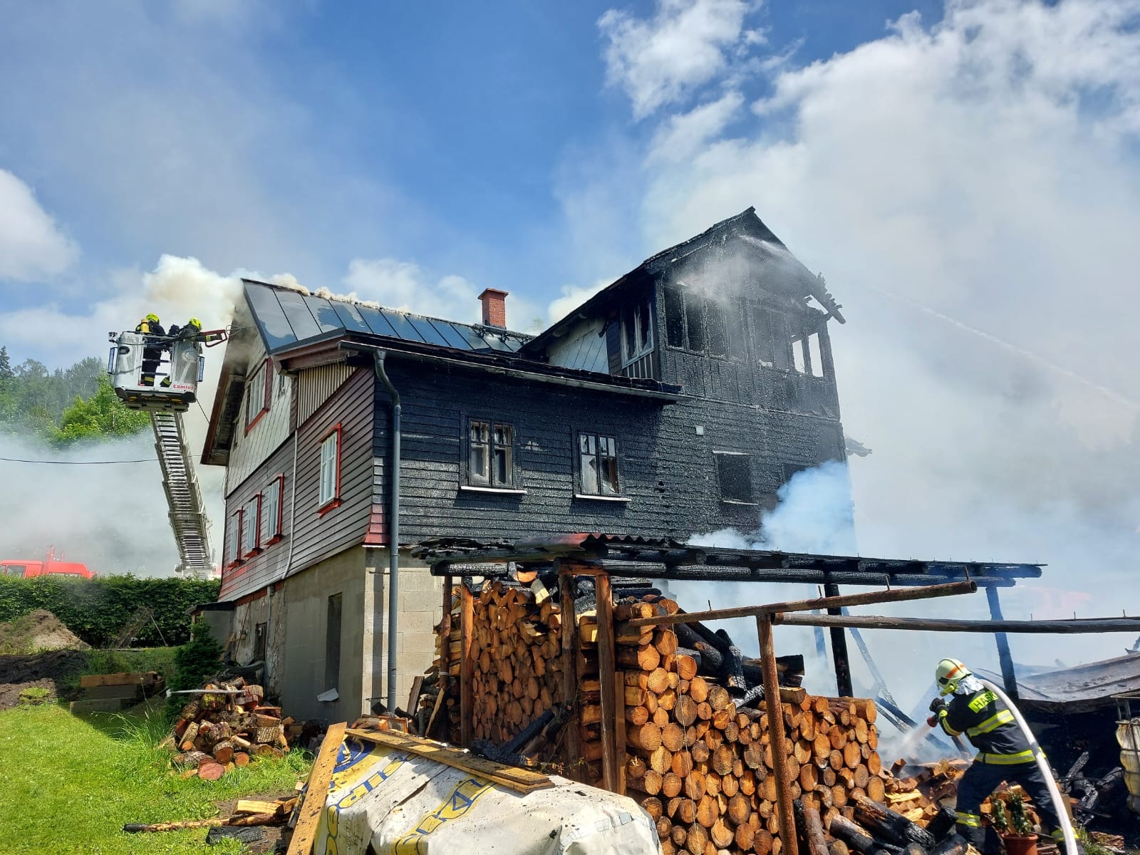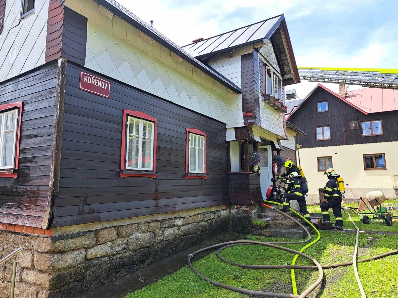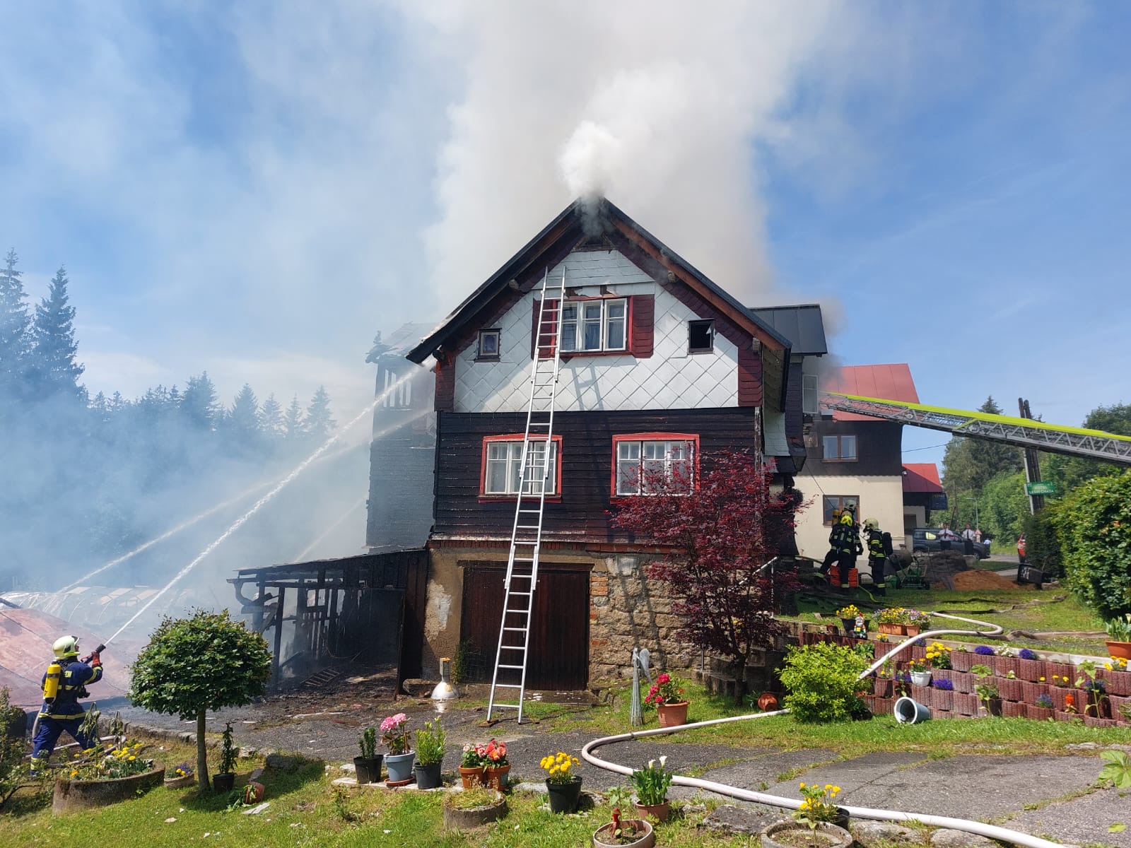 Celkem devět hasičských jednotek z druhého stupně požárního poplachu zaměstnal ve čtvrtek 20. června 2024 požár domu v Horním Kořenově na Jablonecku.