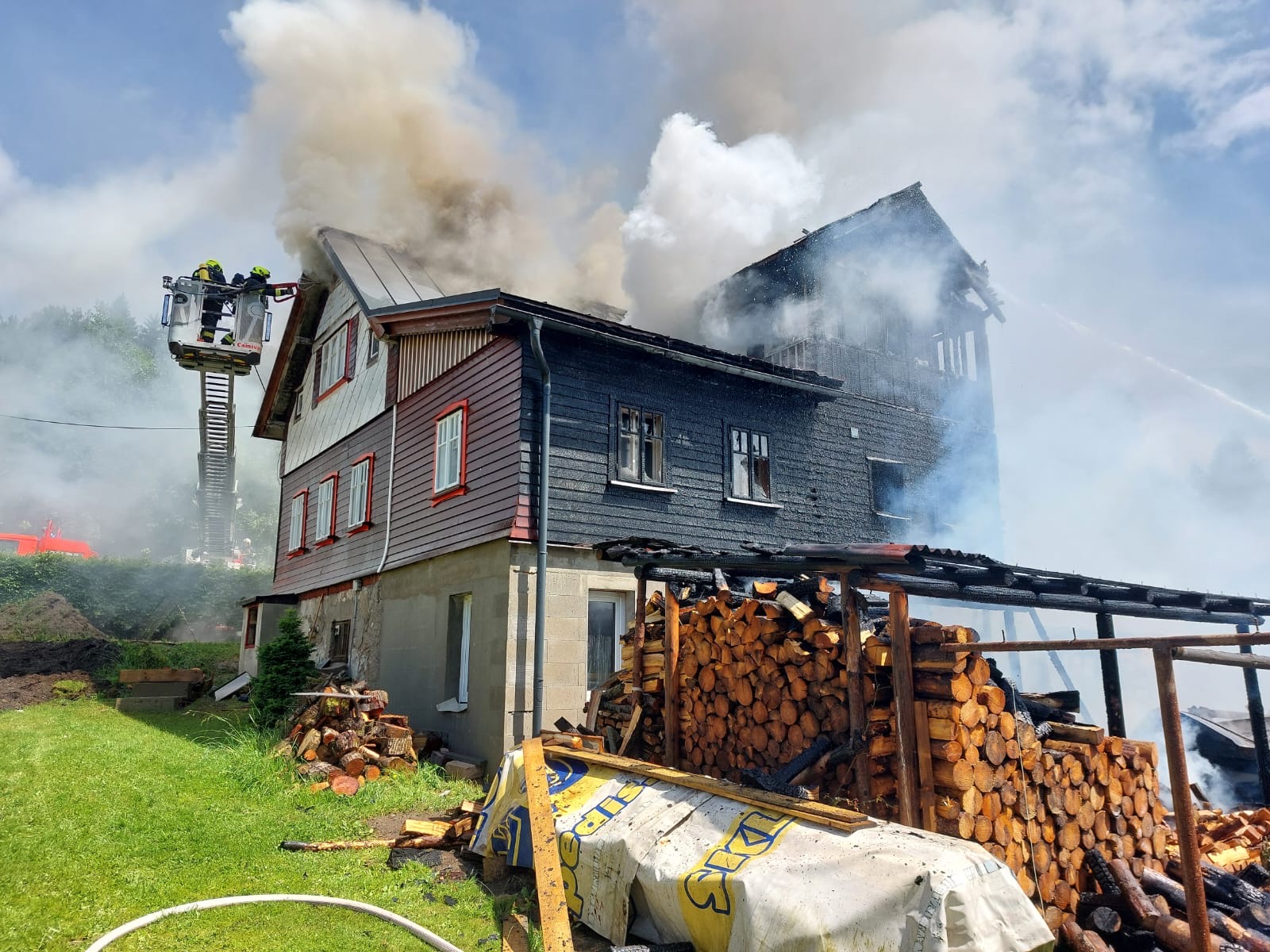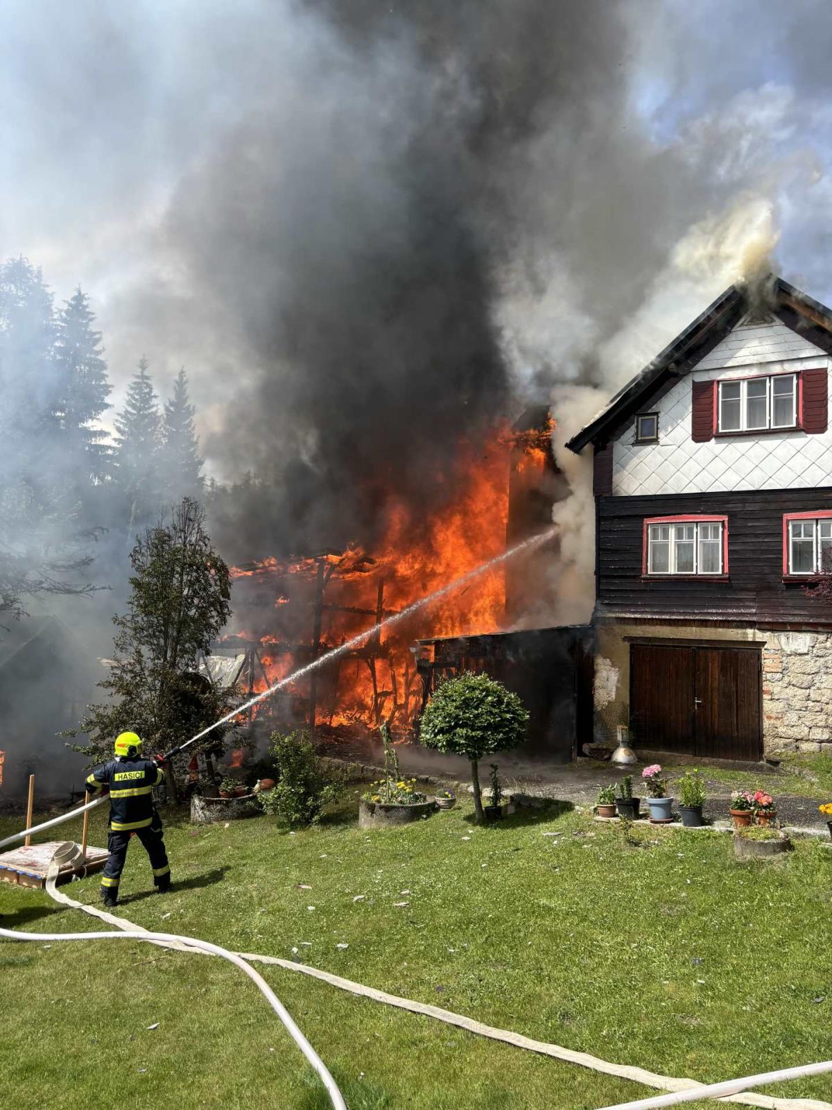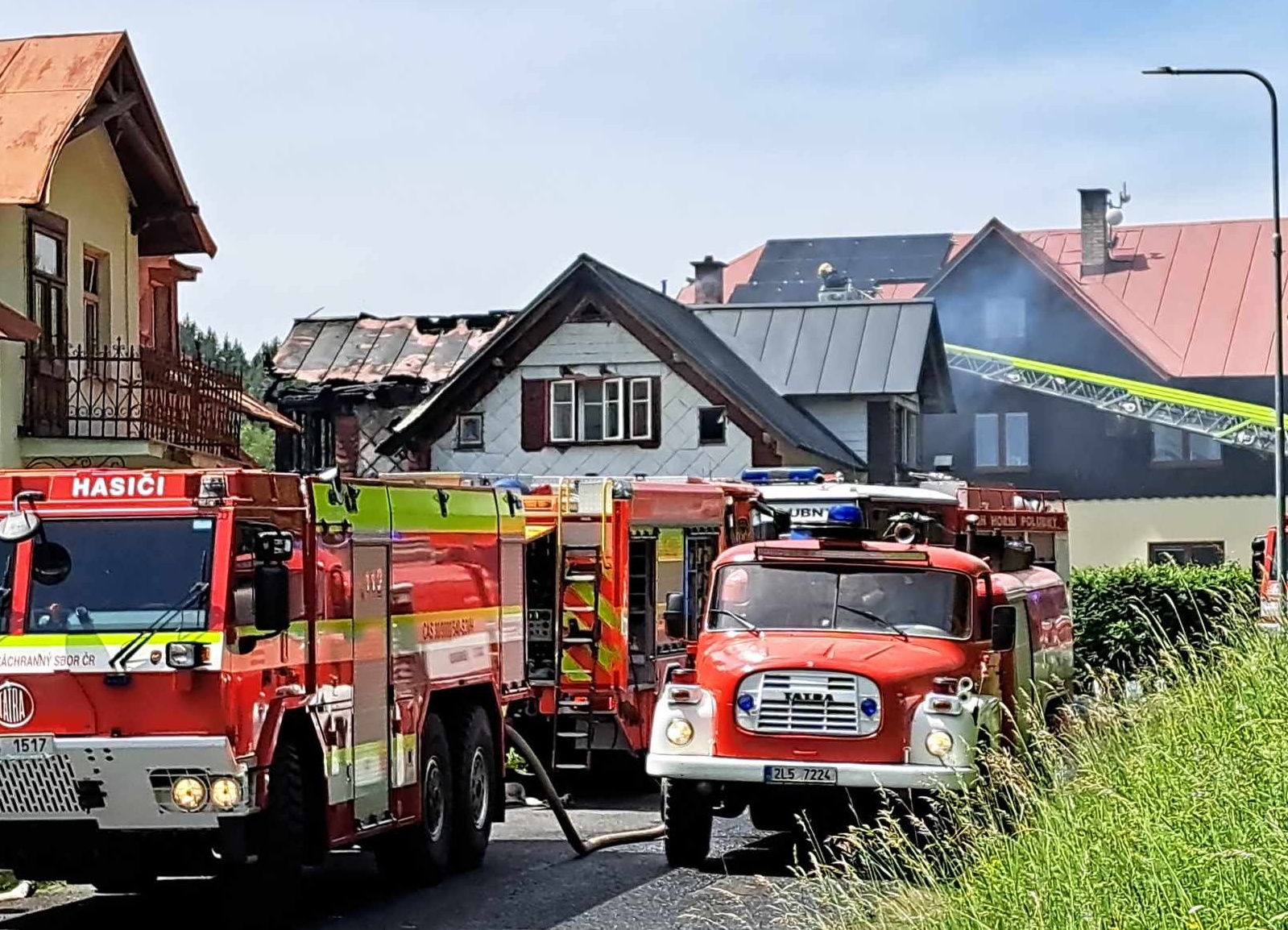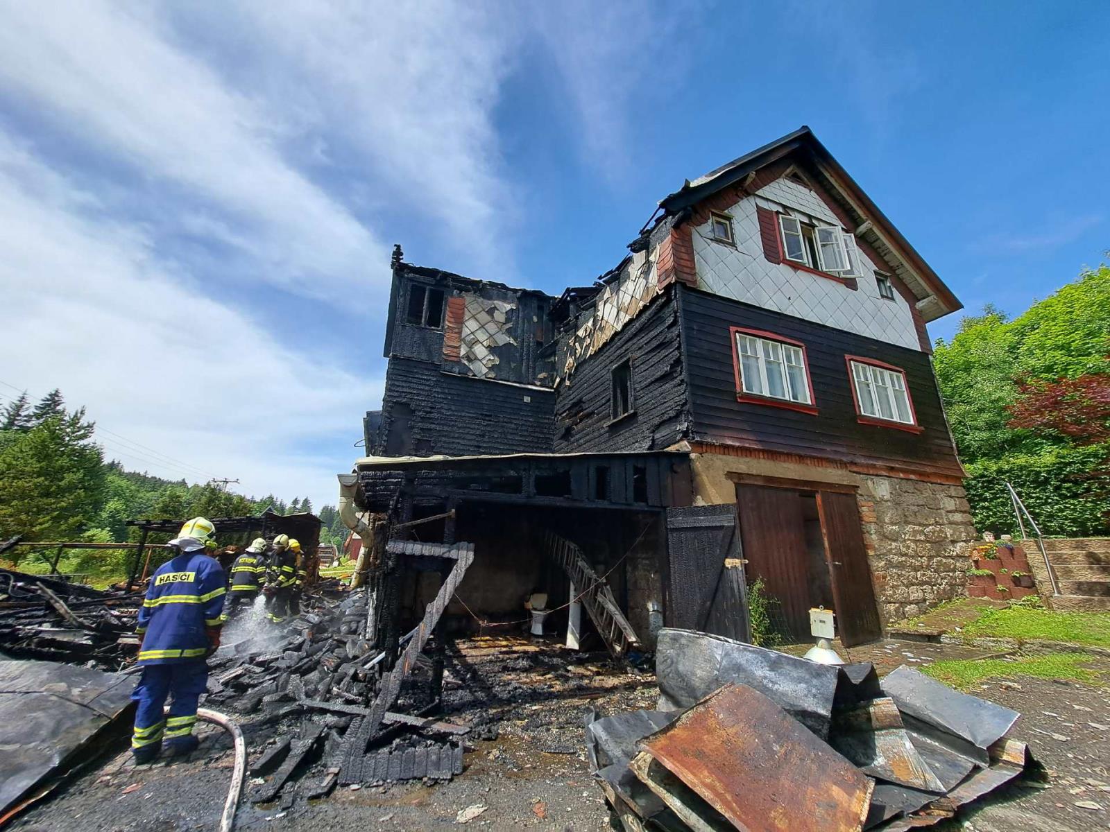 Celkem devět hasičských jednotek z druhého stupně požárního poplachu zaměstnal ve čtvrtek 20. června 2024 požár domu v Horním Kořenově na Jablonecku.