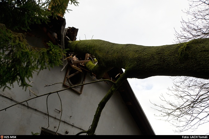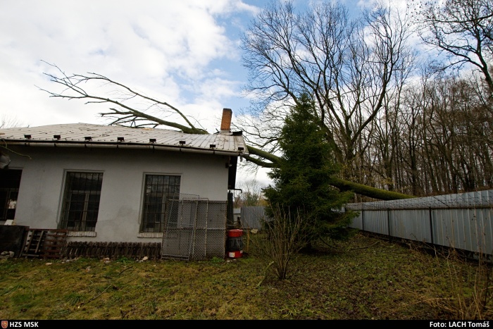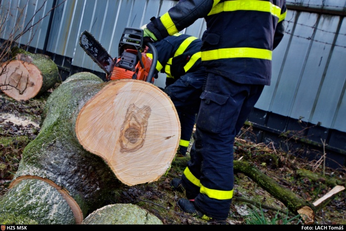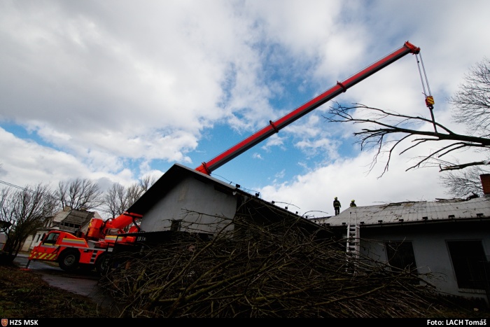 Hasiči mj. odstraňovali 30 metrů dlouhý jasan, který spadl na střechu staršího rodinného domku v Ostravě-Nové Vsi v oblasti Benátky. Na jeho vyzvednutí použili automobilový jeřáb Demag/Terex, kvůli položení na zem a bezpečnému rozřezání kmene museli odstranit asi metr plechového plotu. Zasahovaly zde dvě jednotky HZS MSK (stanice Zábřeh a Přívoz), společně s nimi dobrovolní hasiči z Nové Vsi.
