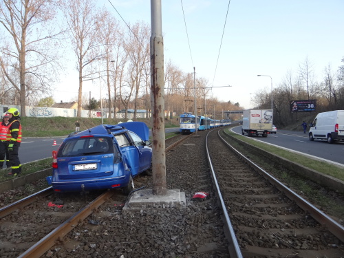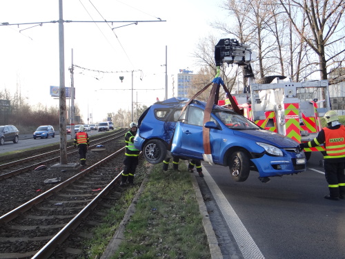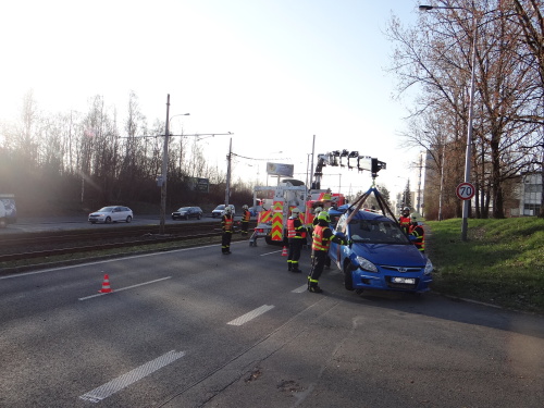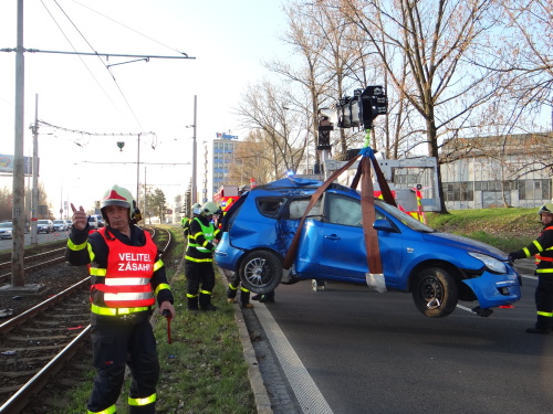 Profesionální hasiči z Ostravy-Zábřehu (HZS MSK) zasahovali v pondělí 1.4.2019 ráno v Plzeňské ulici v sousední čtvrti Hulváky nedaleko osady Bedřiška, kde skončil na tramvajových kolejích osobní automobil Hyundai i30. Jeho řidič vyvázl se zraněním hlavy, naštěstí netrefil festovní sloup, držící tramvajové troleje. Vozidlo přesunul mimo koleje i čtyřproudou silnici nový vyprošťovací speciál ostravských profesionálních hasičů Omars.