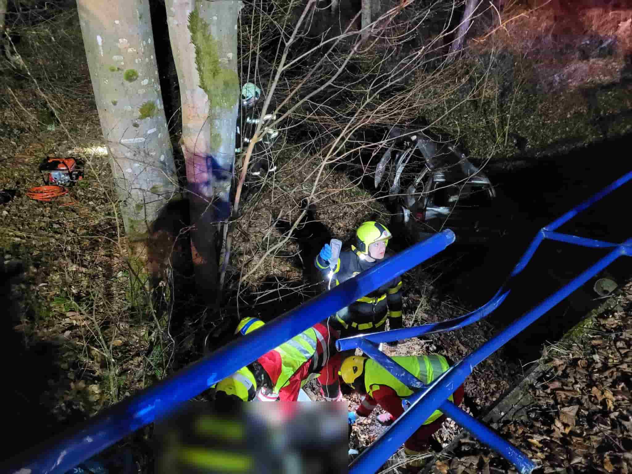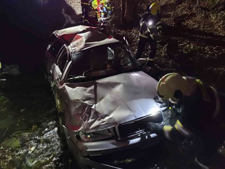 V nočních hodinách došlo k vážné dopravní nehodě osobního vozidla, které skončilo mimo komunikaci v korytě potoka. Hasiči zasahovali rychle a zajistili bezpečí cestujících, vozidla i okolí, přičemž spolupracovali se záchrannou službou a vyprošťovací jednotkou.