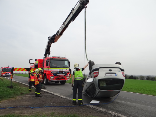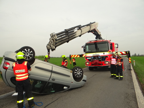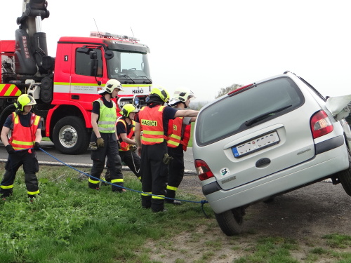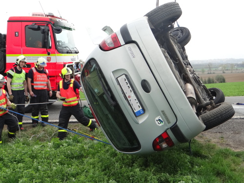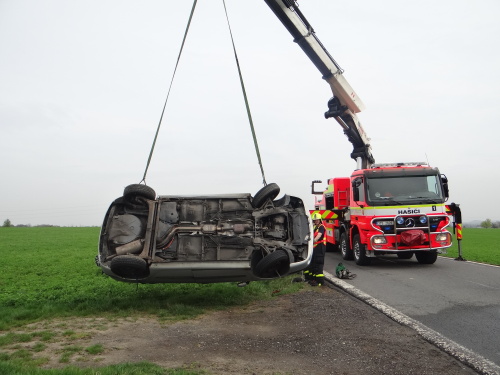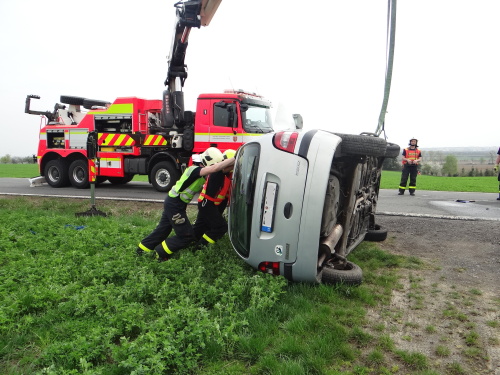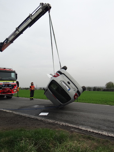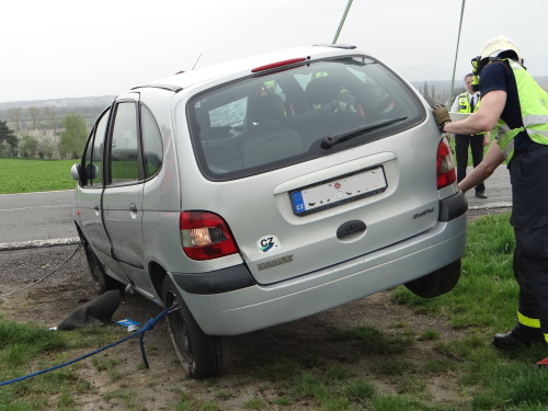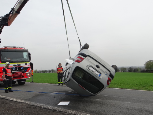 Profesionální hasiči (HZS MSK) z Ostravy-Zábřehu zasahovali v pondělí 16.4.2018 dopoledne v okrajové ostravské části Polanka nad Odrou u nehody osobního automobilu Renault Scénic, který skončil na silnici na střeše. Jeho mladá řidička (1998) se zranila, skončila v nemocnici. Havarované auto otáčel na kola a položil vedle silnice hasičský speciál Bizon.