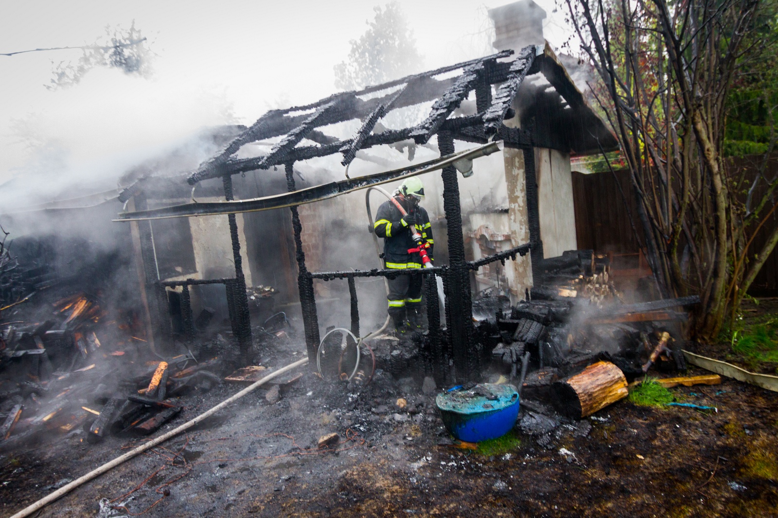 Plameny zachvátily zahradní domek o půdorysu přibližně 8x4 metrů, který sloužil z poloviny jako posezení, z poloviny jako sklad dřeva a nářadí.