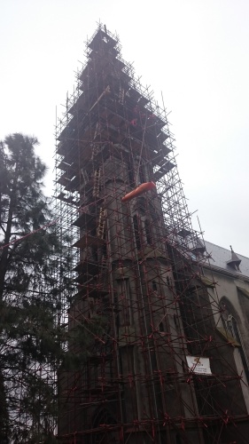 Cvičení na věži ostravského kostela