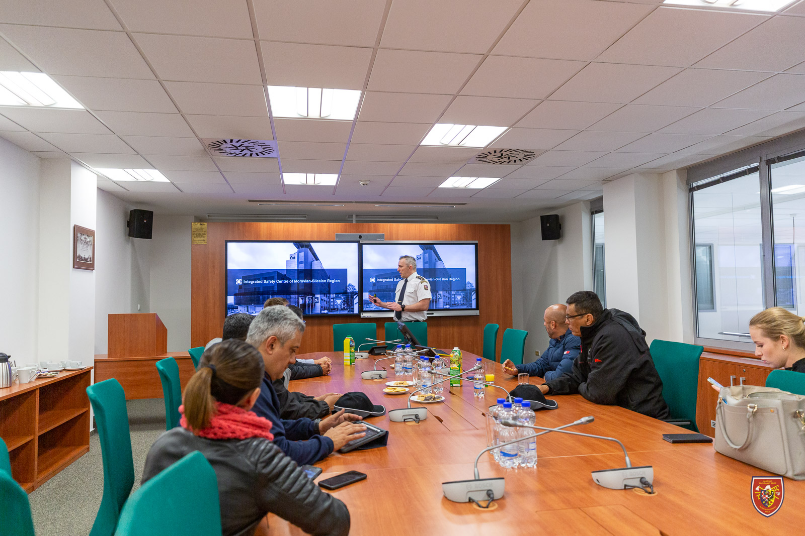 Následovala návštěva Integrovaného bezpečnostního centra (IBC) Moravskoslezského kraje, s jehož činností delegaci seznámil vedoucí oddělení KOPIS a IBC plukovník Ing. Radek Zeman.