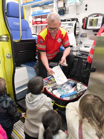 Během návštěvy se děti seznámily s každodenní činností posádek záchranné služby. Prohlédly si sanitní vozidla a jejich vybavení, které záchranáři používají při výjezdech k pacientům.