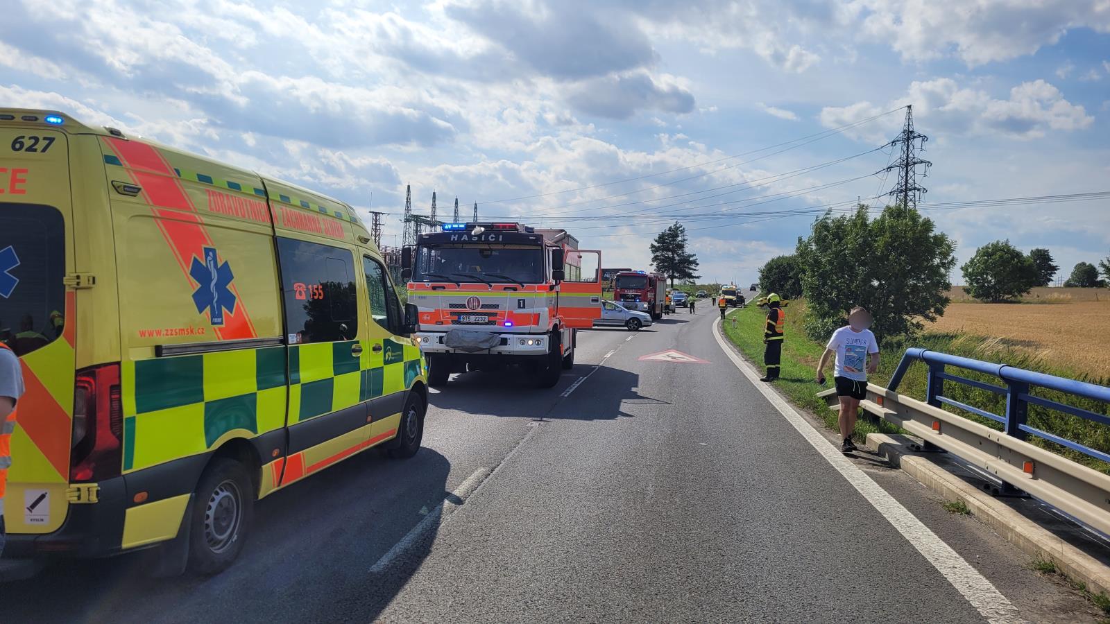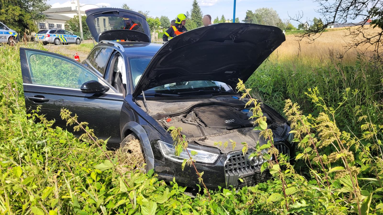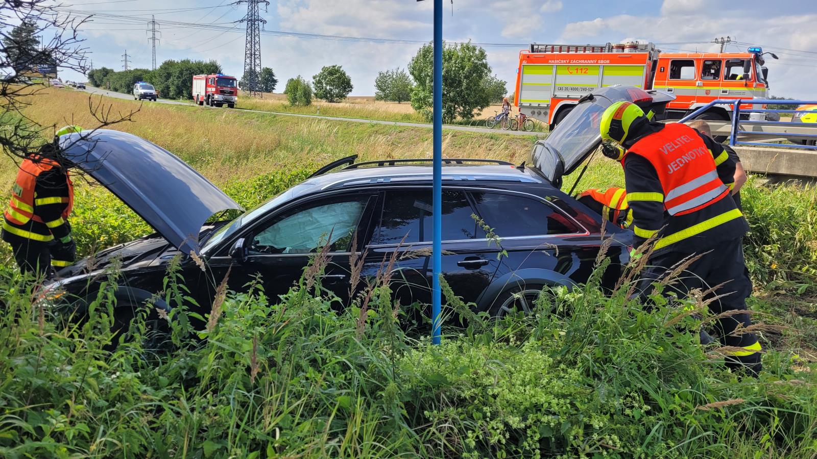 Operační středisko hasičů obdrželo informaci o nehodě ve Velkých Hošticích, okres Opava, v neděli 23.7.2023 krátce před půl třetí odpoledne. Na místo vyjeli profesionální hasiči ze stanice Opava, s nimi dobrovolná jednotka z opavské městské části Kylešovice.