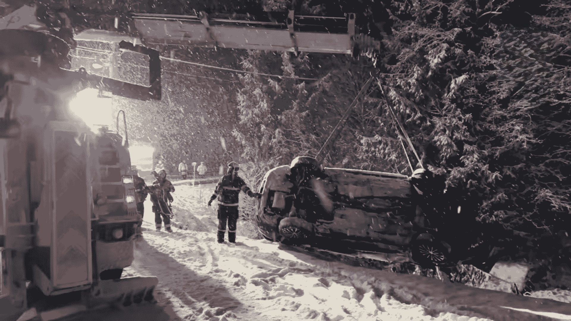 Dramatická noční nehoda v prudkém svahu: Pět lidí v autě