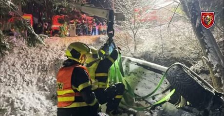 V noci na neděli skončilo osobní auto mimo komunikaci v prudkém svahu v katastru Starých Hamer. Ve vozidle cestovalo pět osob, dvě utrpěly zranění a byly předány do péče ZZS. Náročný terén vyžádal nasazení speciální vyprošťovací techniky, hasiči zajistili bezpečnost místa zásahu.