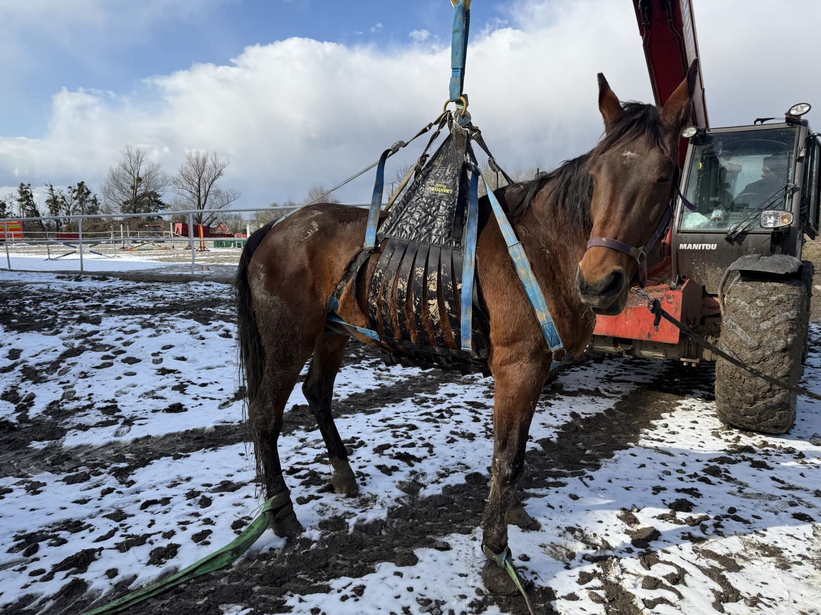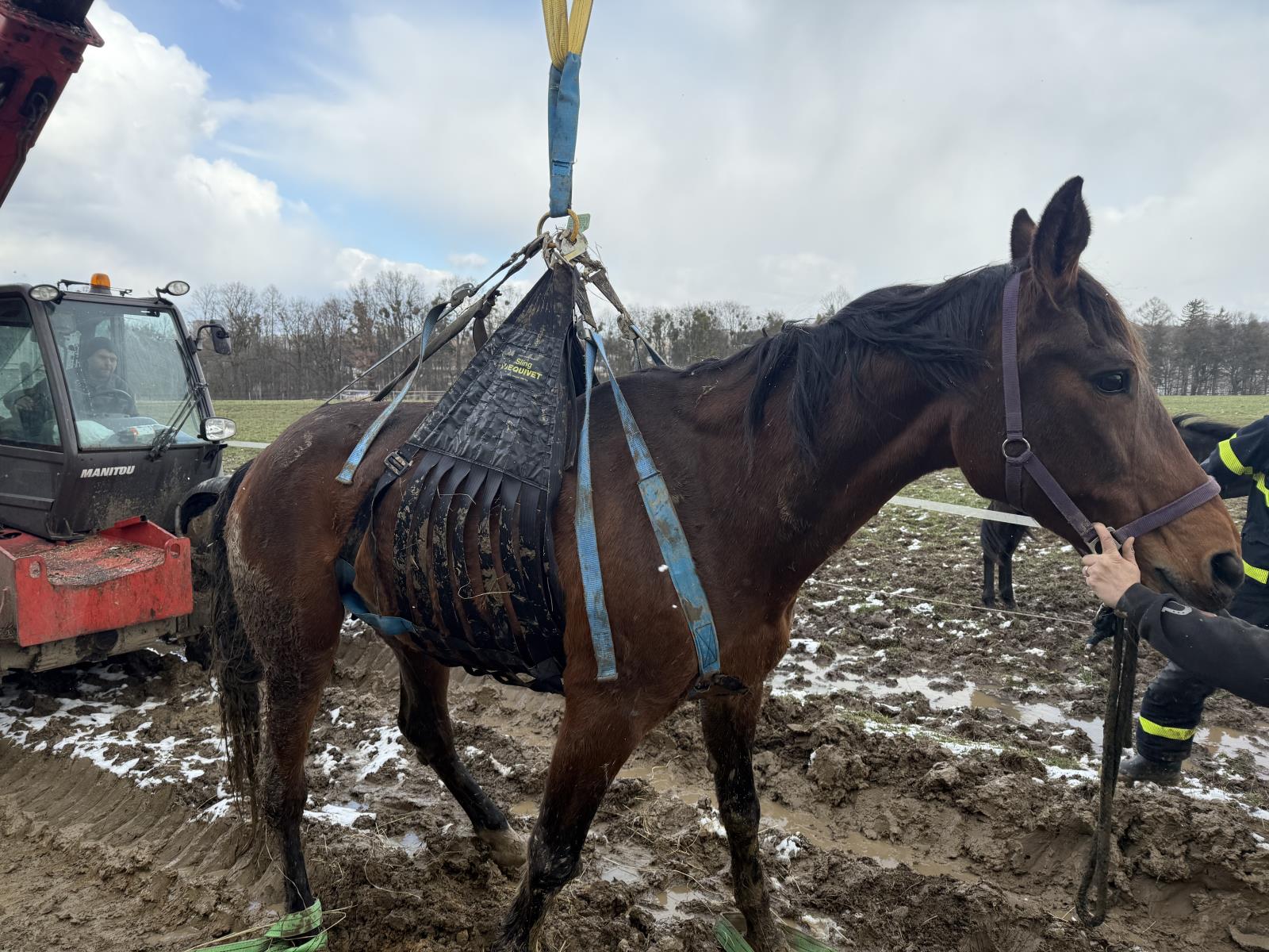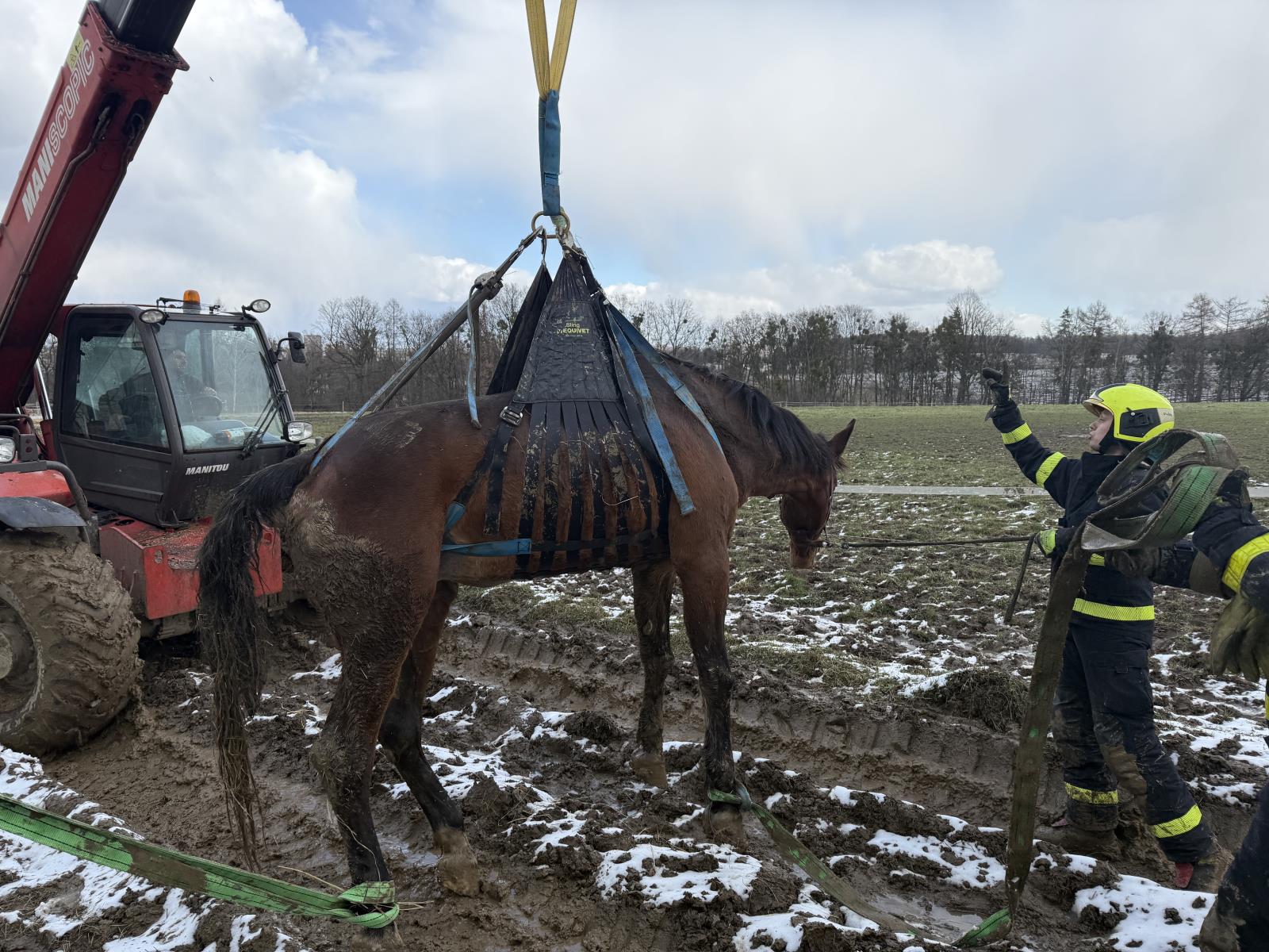 Hasiči nejprve zajistili kobyle tepelný komfort – přikryli ji dekami a kontrolovali její stav. Poté nastoupila těžká technika. Za pomoci speciální sítě určené ke zvedání koní a teleskopického manipulátoru začal precizní manévr, při kterém šlo o každý detail. Sebemenší špatný pohyb mohl vést ke zranění nebo dalšímu šoku zvířete.
