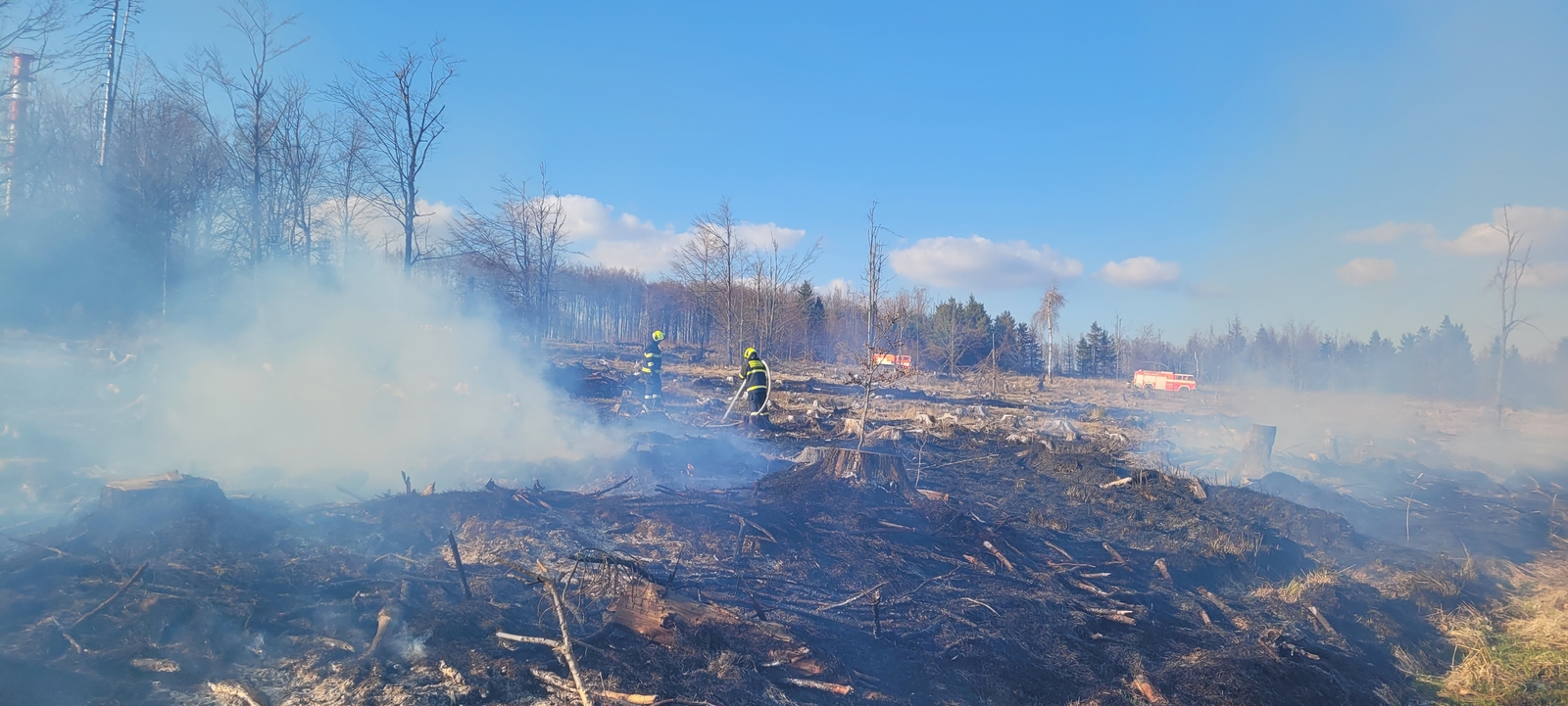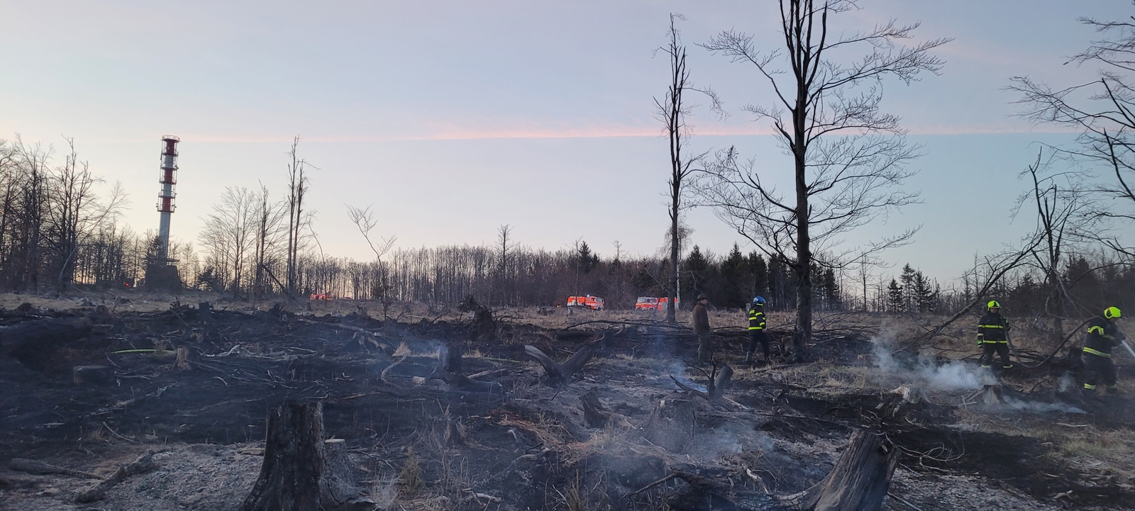 Dvanáct jednotek hasičů se v sobotu 23. dubna 2022 zapojilo do likvidace rozsáhlého požáru louky a lesního porostu v těžko přístupném terénu pod vrcholem Slunečná v Dětřichově nad Bystřicí.