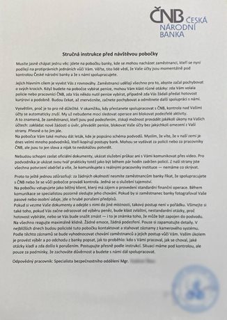 Opět apelujeme na veřejnost s tím, že policista, pracovník banky ani zástupce centrální banky nikdy nesedí u jednoho stolu při společném telefonátu a neřeší finance po telefonu najednou. Policie zároveň důrazně upozorňuje, že žádný policista nebude po nikom požadovat převod peněz na jakýkoli bankovní účet ani zřizování takzvaných bezpečnostních účtů. Pokud se kdokoli dostane do podobné situace nebo má při hovoru jakékoli pochybnosti, je na místě hovor okamžitě ukončit a věc si ověřit přímo na nejbližší policejní služebně nebo u své banky osobně.