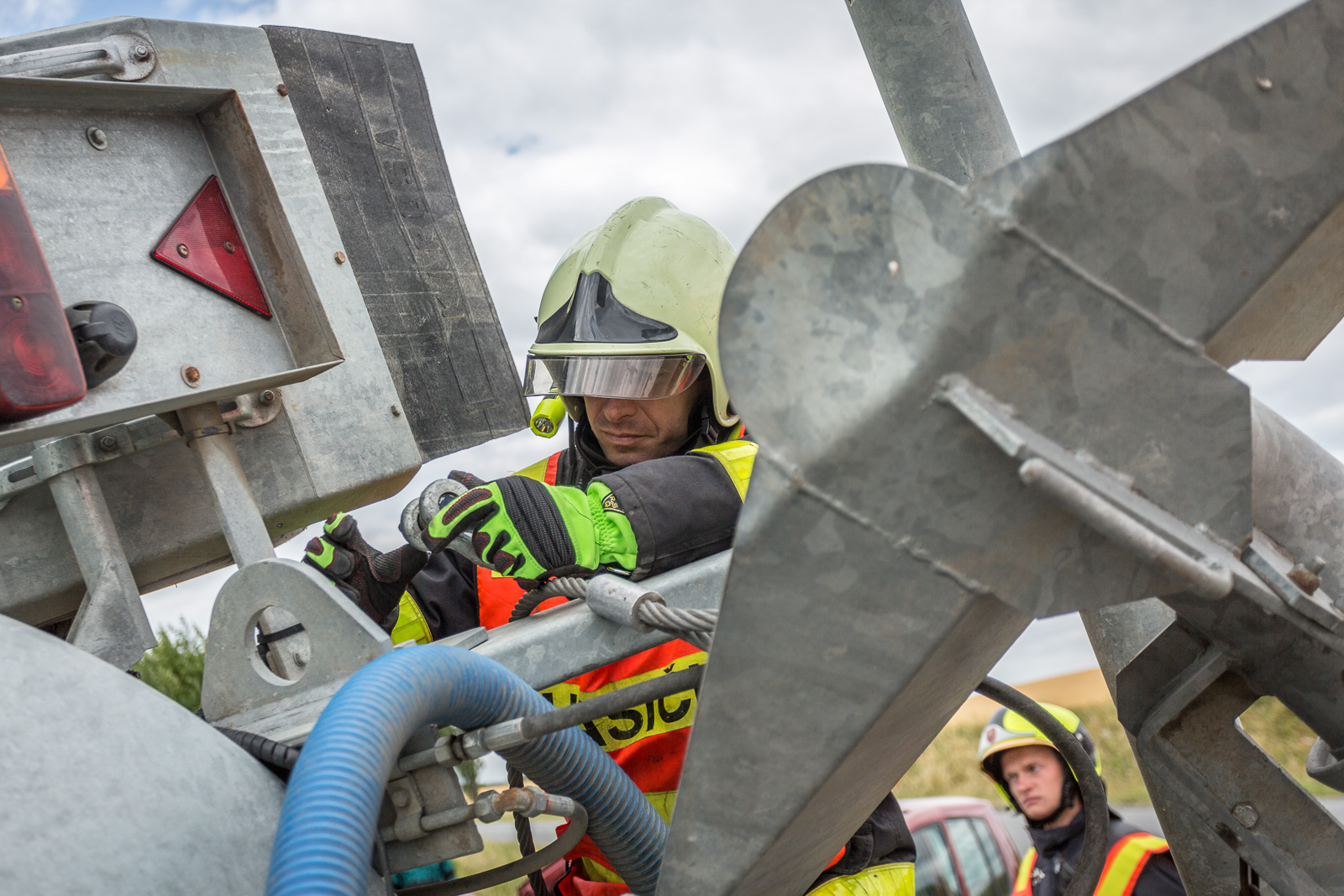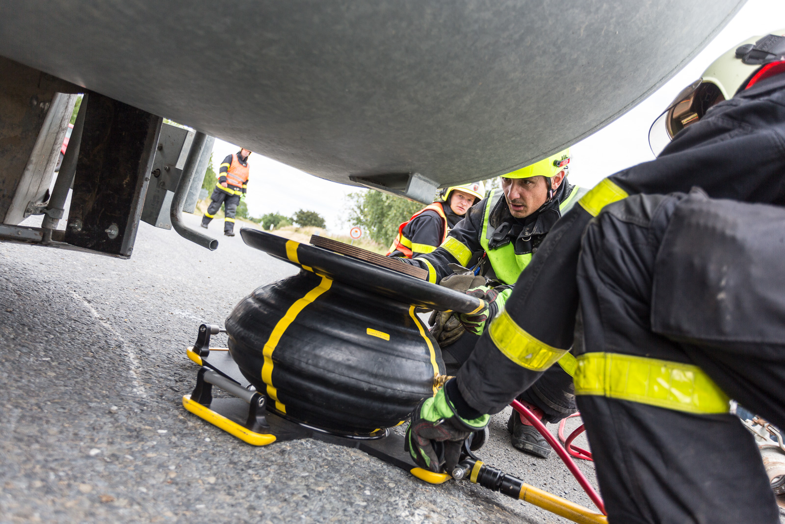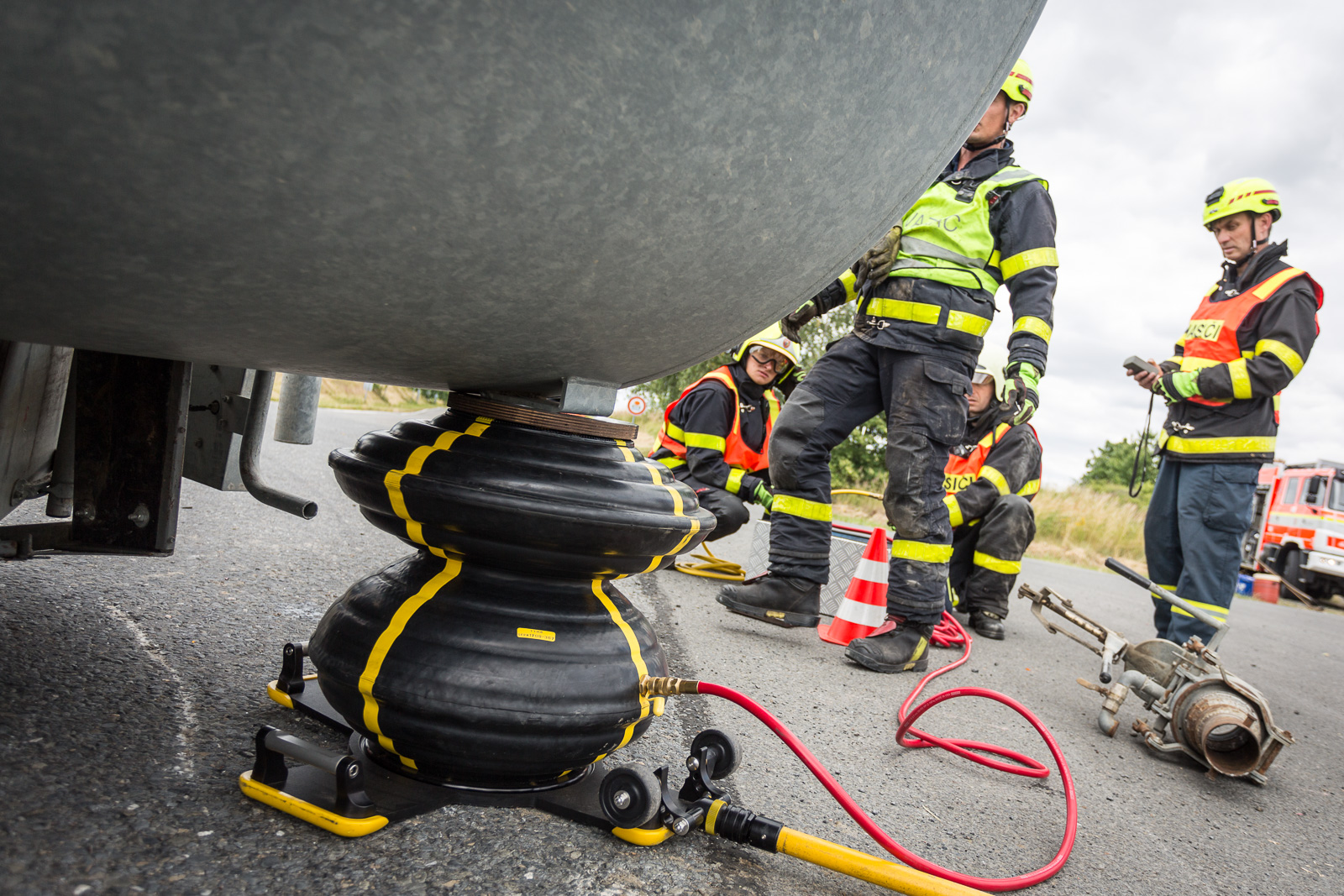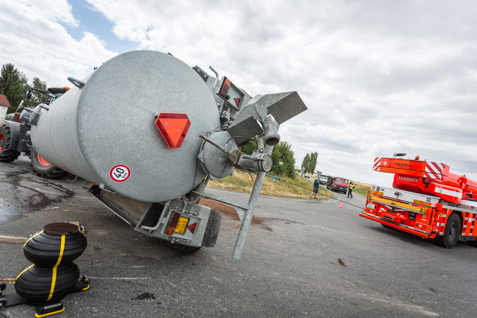 Pro otočení vlečky s cisternou na převoz vody si velitel zásahu na místo povolal automobilový jeřáb ze stanice HZS MSK v Opavě. Pomocí jeho navijáku a  vysokotlakého pneumatického zvedacího vaku postavili hasiči vlek zpět na kola.