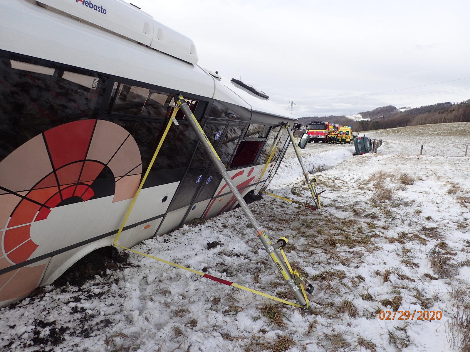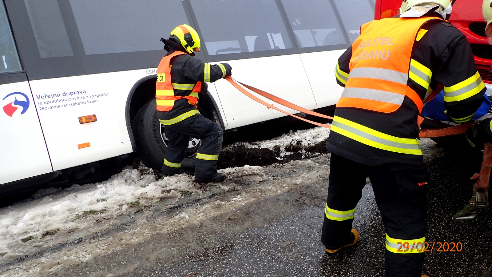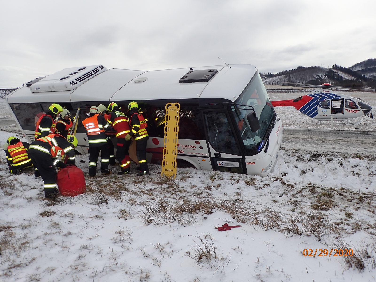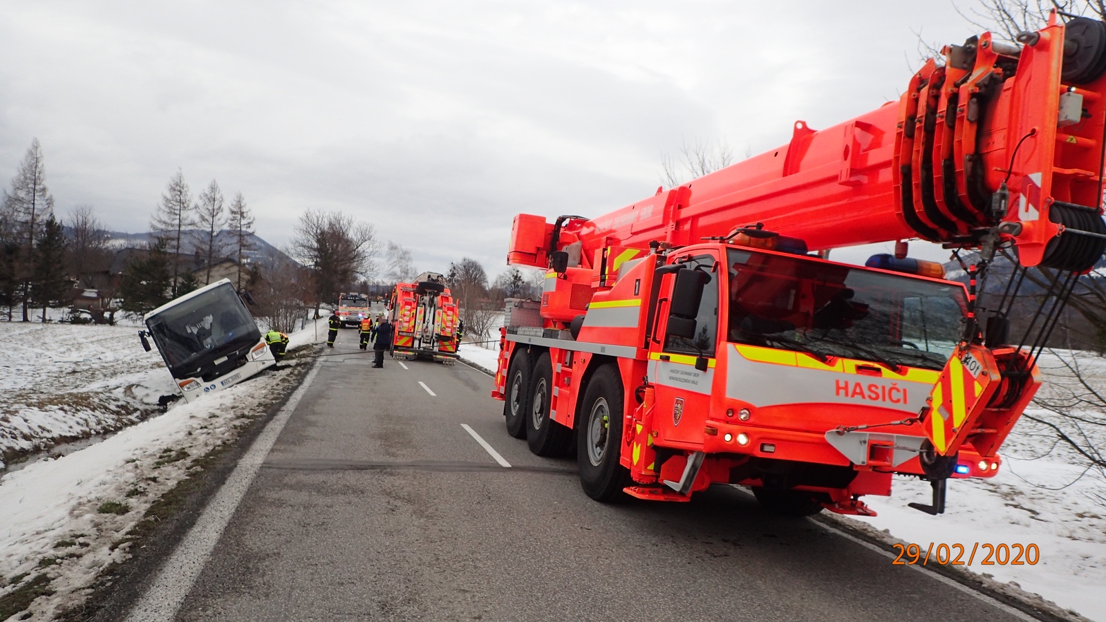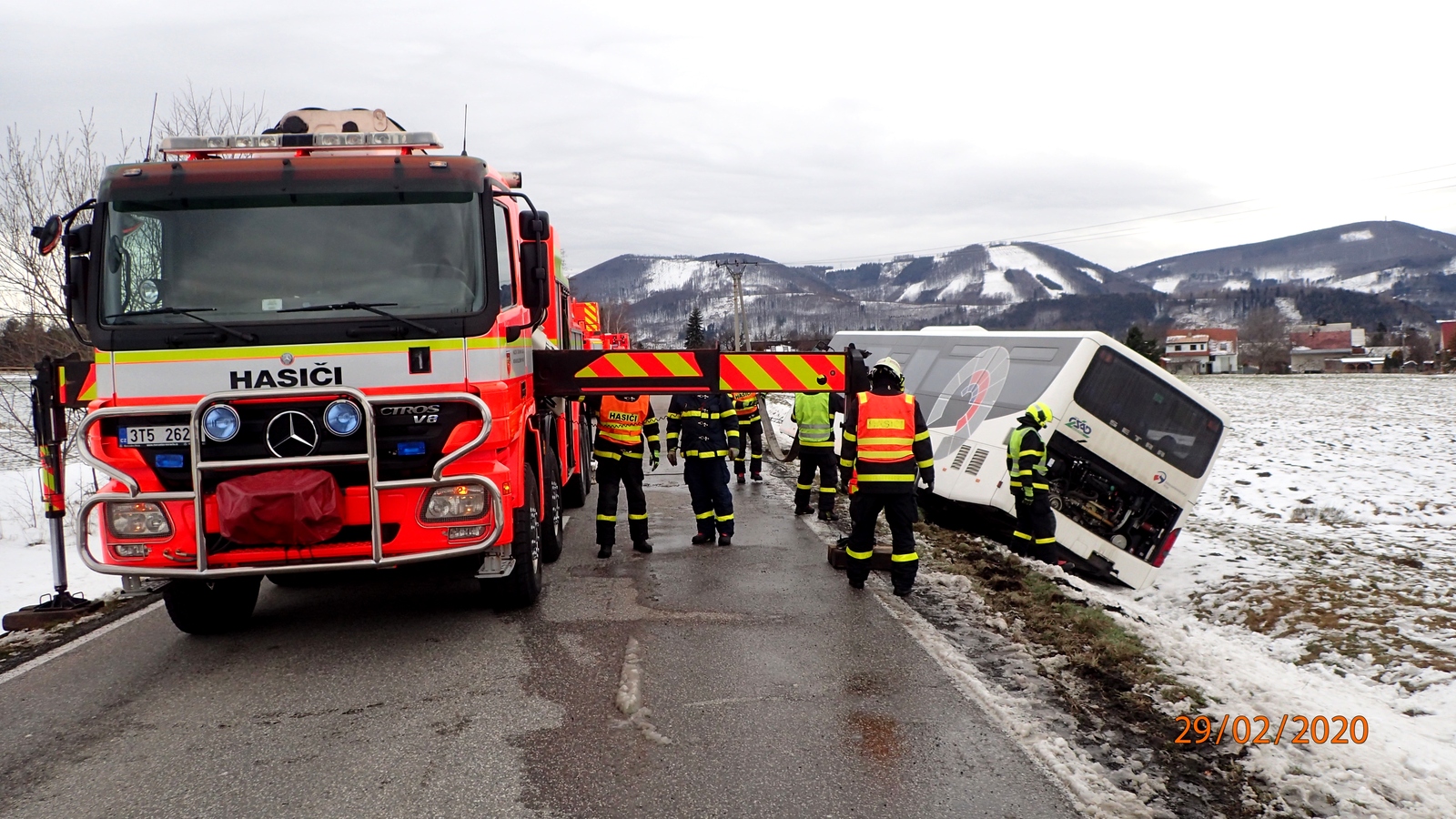 Hasiči po příjezdu na místo události provedli speciálními tyčemi stabilizaci autobusu, který zůstal v příkopu nakloněný na bok, následně z vozu zachránili devět lidí. Dva z cestujících utrpěli zranění a byli převezeni do nemocnice.