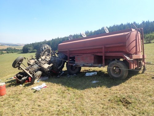 Operační středisko hasičů bylo o nehodě traktoru na Krnovsku, který za sebou táhl valník se sudem s vodou pro zvířata na pastvě, informováno v pondělí před devátou hodinou ranní.