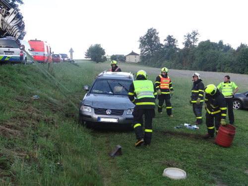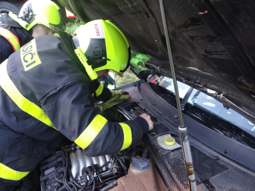Hasiči zabezpečili auto před případným požárem a na menší únik provozních kapalin použili nasákavý sorbent.